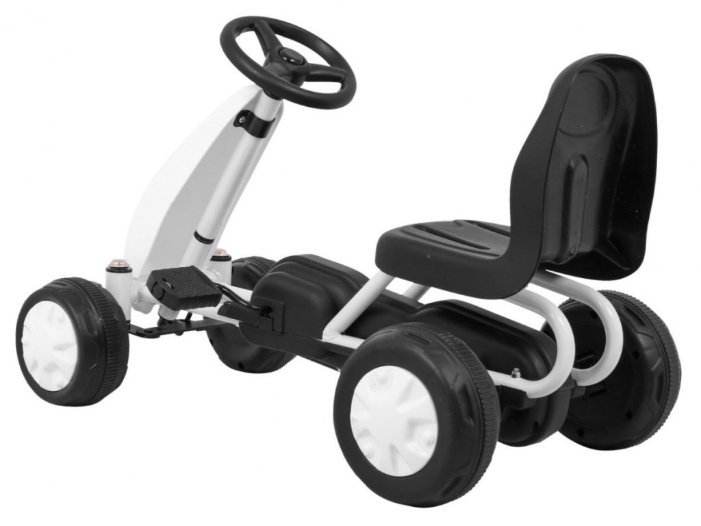 Детска педална мотокара бяла е идеалният спътник за развитие на двигателните умения на Вашето дете. Благодарение на колелата от твърда пластмаса, детето може да кара както по гладък, така и по неравен терен. Педалната мотокара е оборудвана с ергономично оформено и удобно седалче, което позволява на детето да кара през целия ден с максимален комфорт. Педалната мотокара се управлява с помощта на спортен волан. Детската мотокара се задвижва чрез педали без мотор, което я прави напълно безшумна и екологично чиста. Това е нова форма на спортна активност за най-малките.