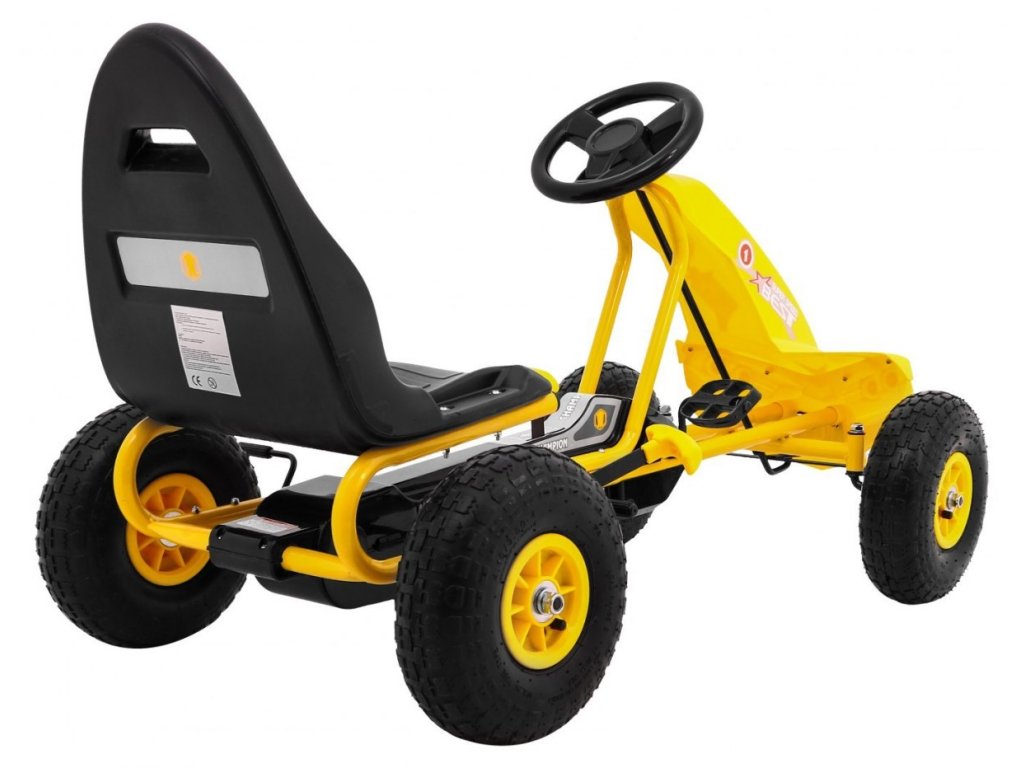 Детската педална мотокара Champion жълта е висококачествен детски педален автомобил с модерен дизайн. Прецизно изработена метална конструкция в комбинация с качествена пластмаса гарантира, че мотокарата няма да бъде сезонен продукт. За безопасността на детето е включена функционална ръчна спирачка, а здравето е подсигурено от висока облегалка с ергономична форма. Седалката може да се регулира според удобството на Вашето дете. Педалният автомобил позволява движение напред и назад. Колелата са от омекотен гумен пластмасов материал, което осигурява перфектно сцепление с повърхността. Детската педална мотокара Champion е отличен начин за движение и забавление на децата. Благодарение на човешката сила е екологично чиста и безшумна.