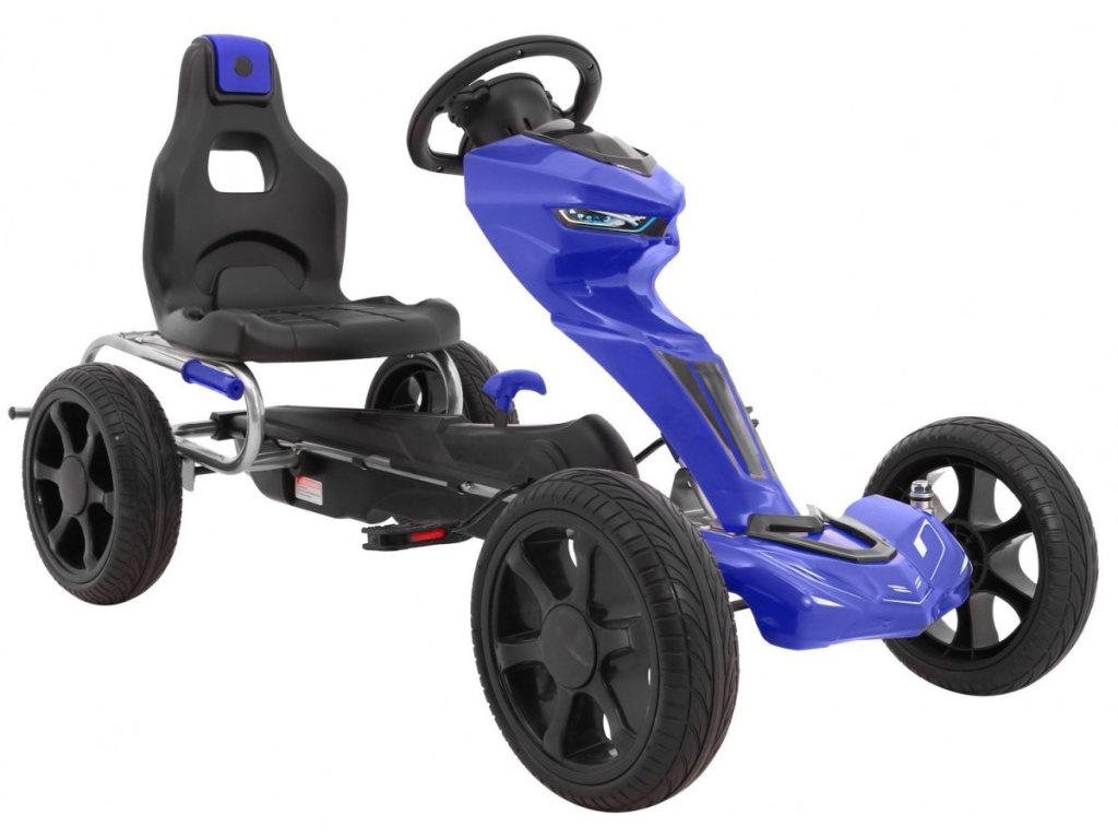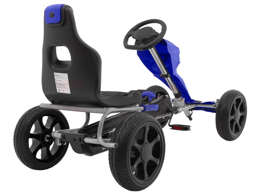 Безопасна и удобна детска педална мотокара Гранд Райд синя, с която Вашето дете ще тренира равновесие и обща моторна координация по време на каране. Специално проектирана рамка и платформа правят това превозно средство подходящо за деца от 3 години нагоре. Благодарение на уникалния дизайн и висококачествените материали, съобразени с възрастта на малките водачи, можете да сте сигурни в безопасността на Вашите деца. Така те могат бързо и безопасно да управляват и да вземат завоите. Предимство е и регулируемото седалково място с 2-степенна настройка. Продуктът разполага с европейски сертификат за безопасност CE.