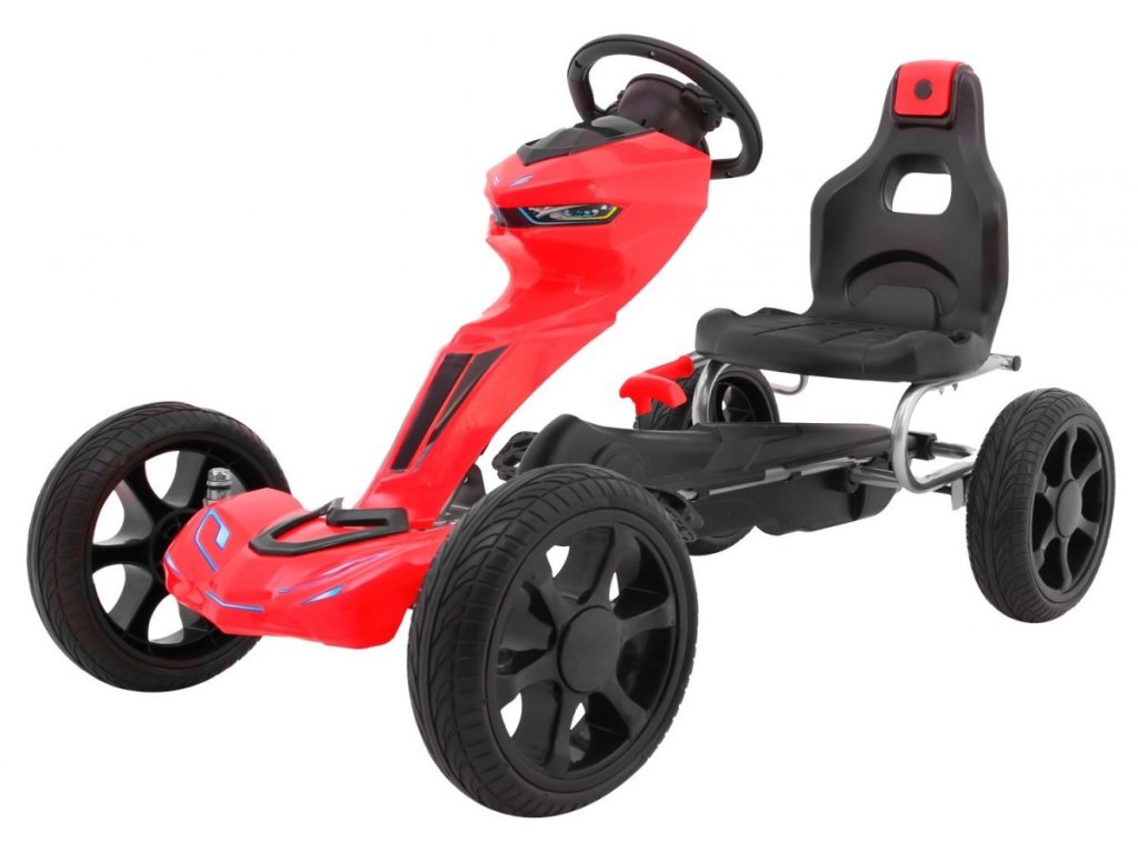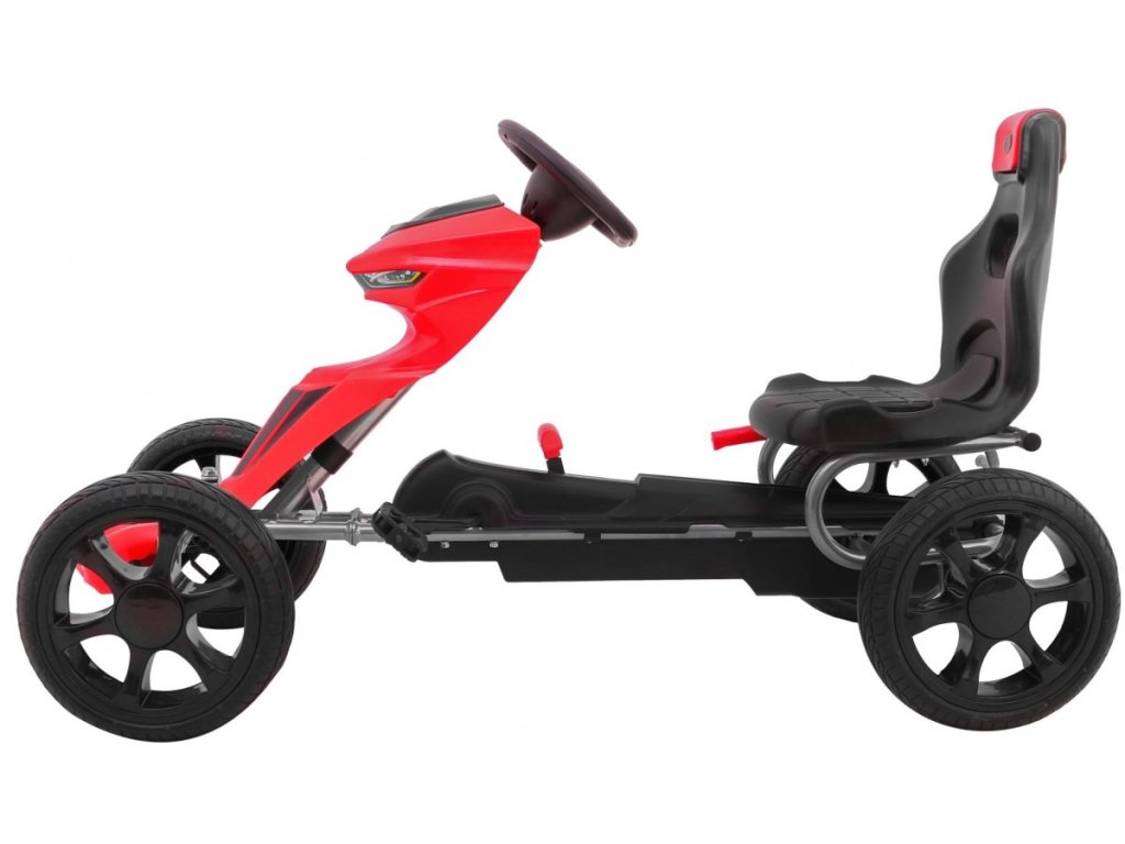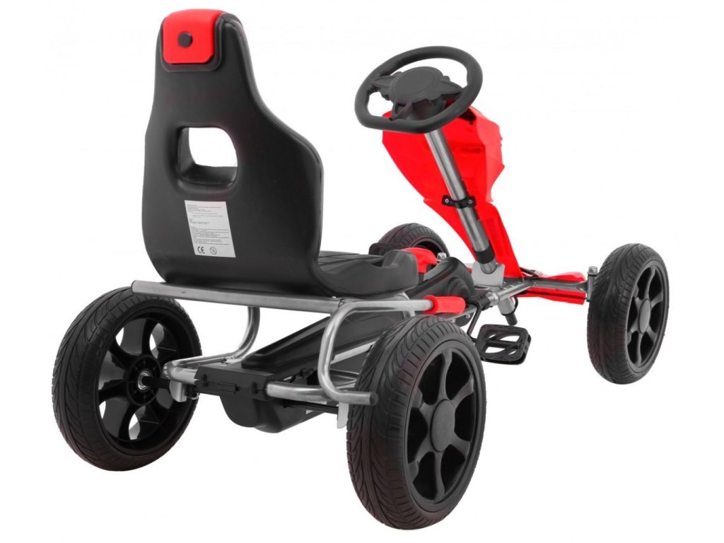 Безопасна и удобна детска педална мотокара, с която вашето дете ще развива своя баланс и обща моторна координация по време на каране. Специално проектираната рамка и платформа правят това превозно средство подходящо за деца над 3 години. Благодарение на уникалния дизайн и висококачествените материали, адаптирани за възрастта на малките водачи, можете да сте сигурни в сигурността на вашето дете. Така можете бързо и безопасно да управлявате и взимате завои. Предимство е и регулируемата седалка с 2 нива на позициониране. Продуктът разполага с европейски сертификат за безопасност CE.