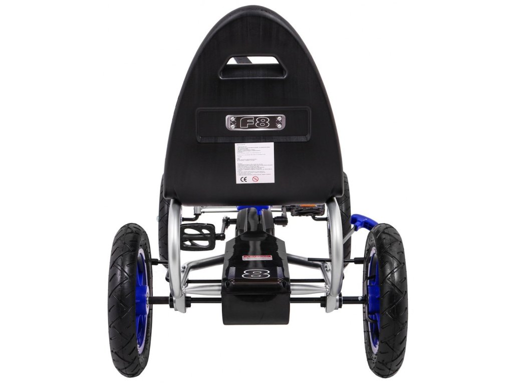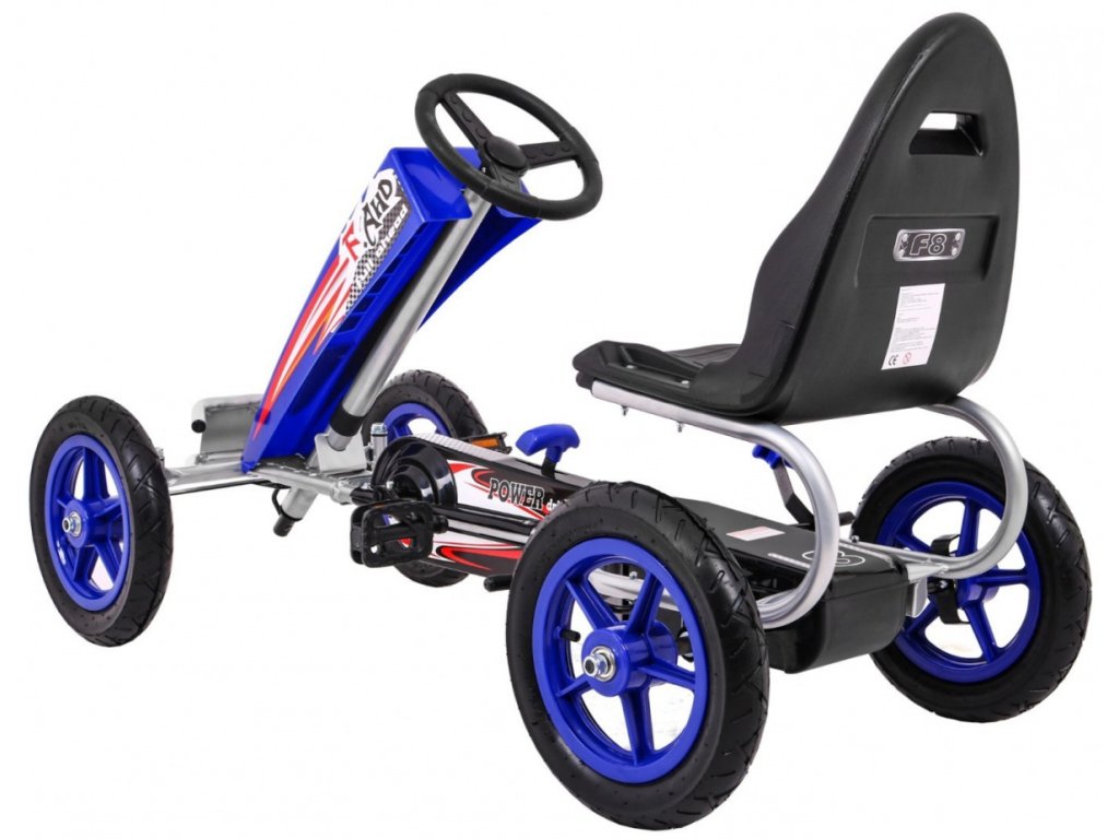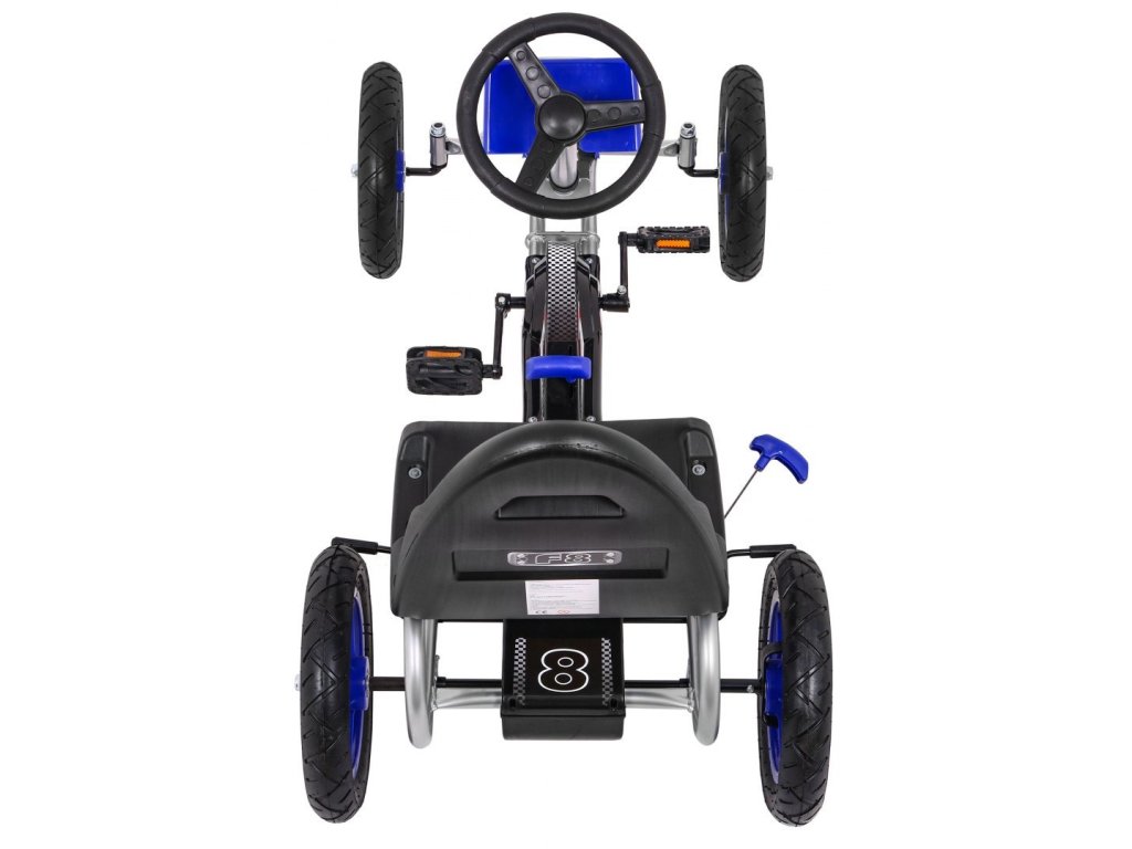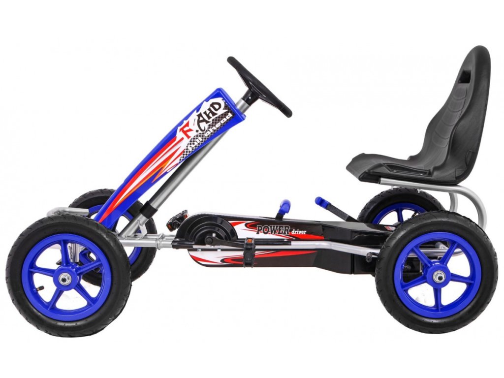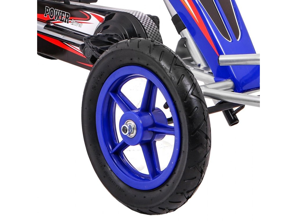 Детска педална мотокара с надуваеми гуми е изработена от лека метална конструкция с елементи от пластмаса. Оборудвана е с надуваеми гумени гуми и удобен, оформен седалков елемент, осигуряващ комфорт при каране.