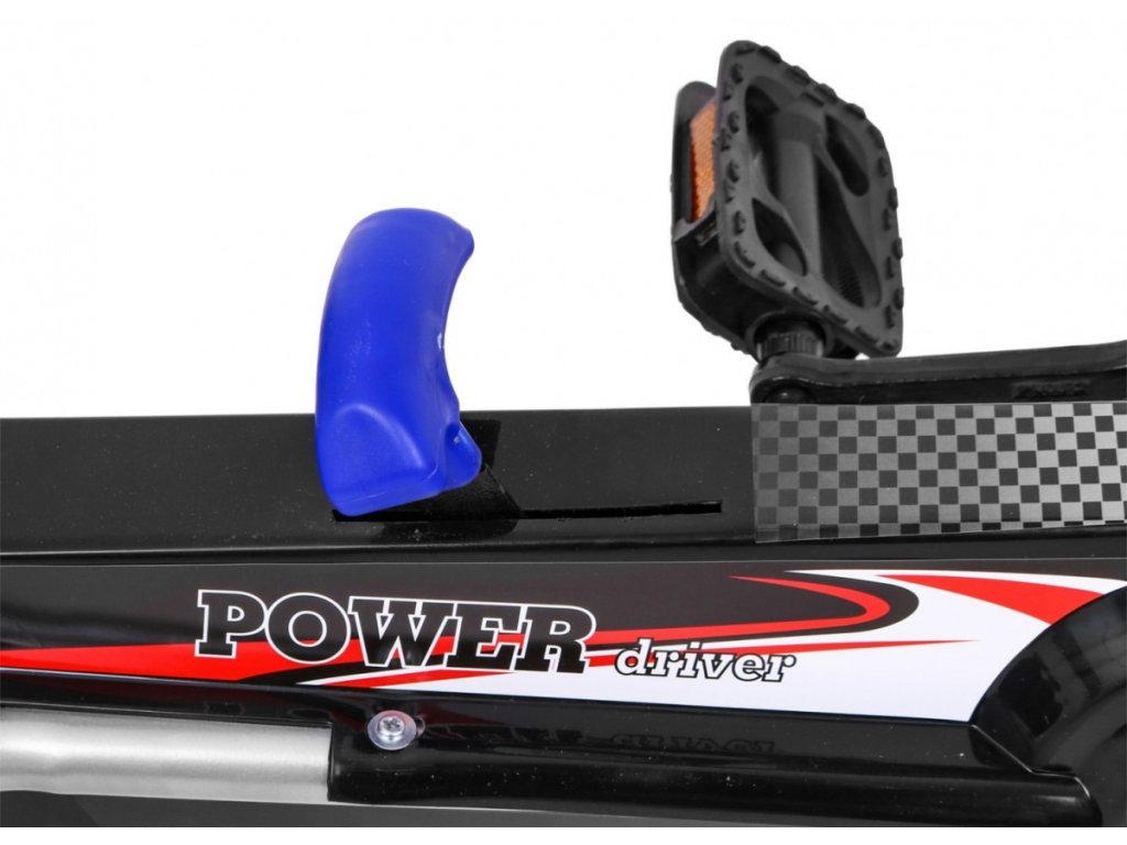 Седалката разполага с двустепенно регулиране на разстоянието от волана, което позволява лесно адаптиране към ръста на детето. Ръчна спирачка гарантира безопасно спиране.