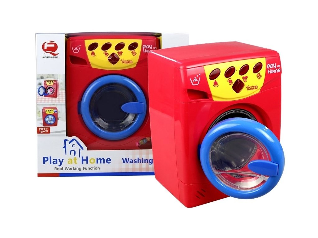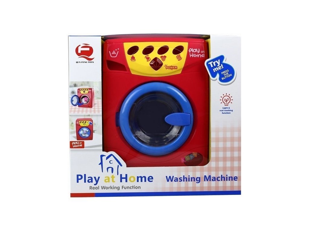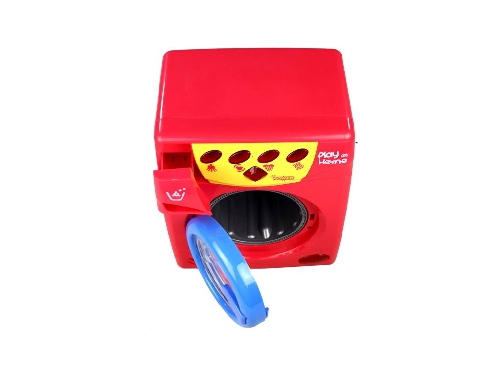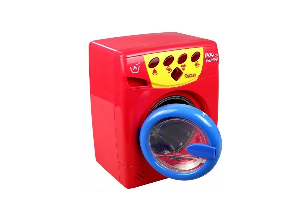 Детска пералня на батерии с вода в ярки цветове. Просто поставете дрехите в пералнята, изберете подходящата програма (перане, изплакване, центрофугиране) и сте готови! Пералнята има звукови и светлинни ефекти, които със сигурност ще направят играта по-забавна.