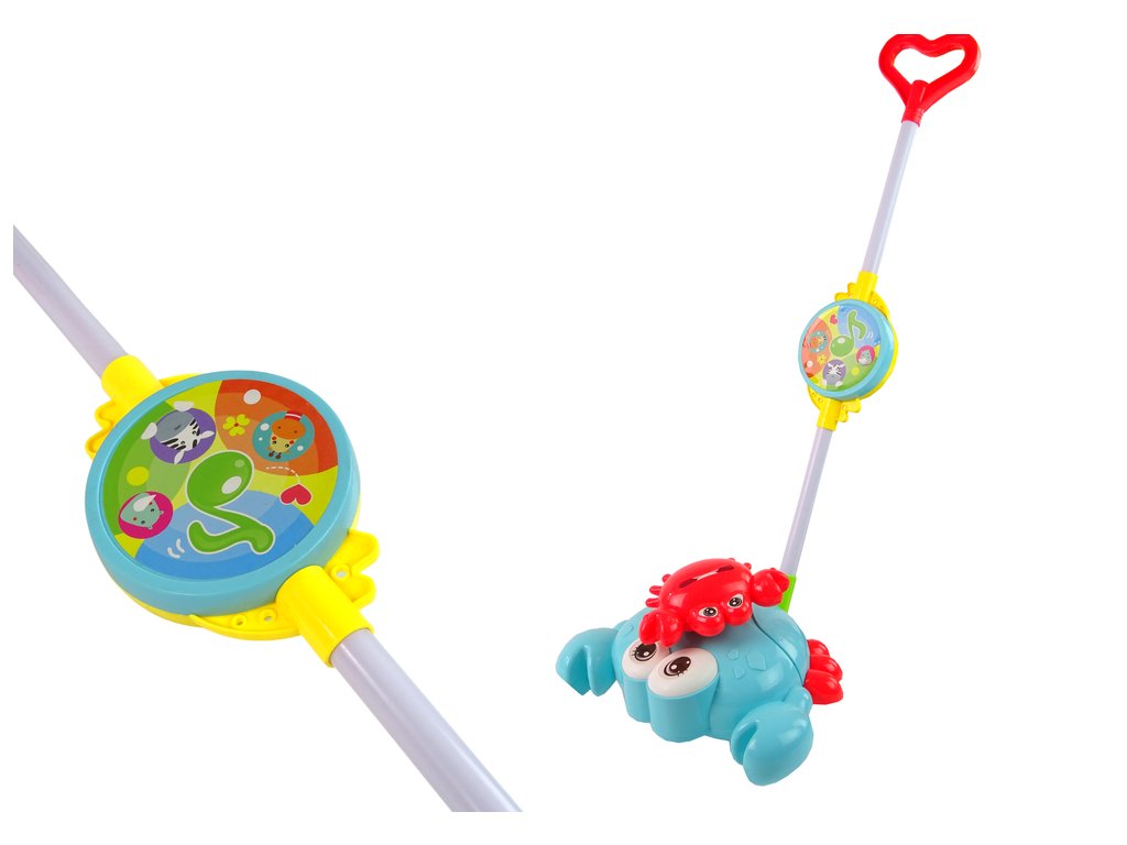 - При движение напред ракът издава звънлив звук. Големият рак е в син цвят с малък червен рак отгоре, който се върти при всяко движение напред. Включената дръжка е подвижна и може да се свали, когато детето иска да играе в леглото си. Плъзгачът, който е част от комплекта, се състои от две светещи части, свързани чрез среден панел, от който излиза весела музика.