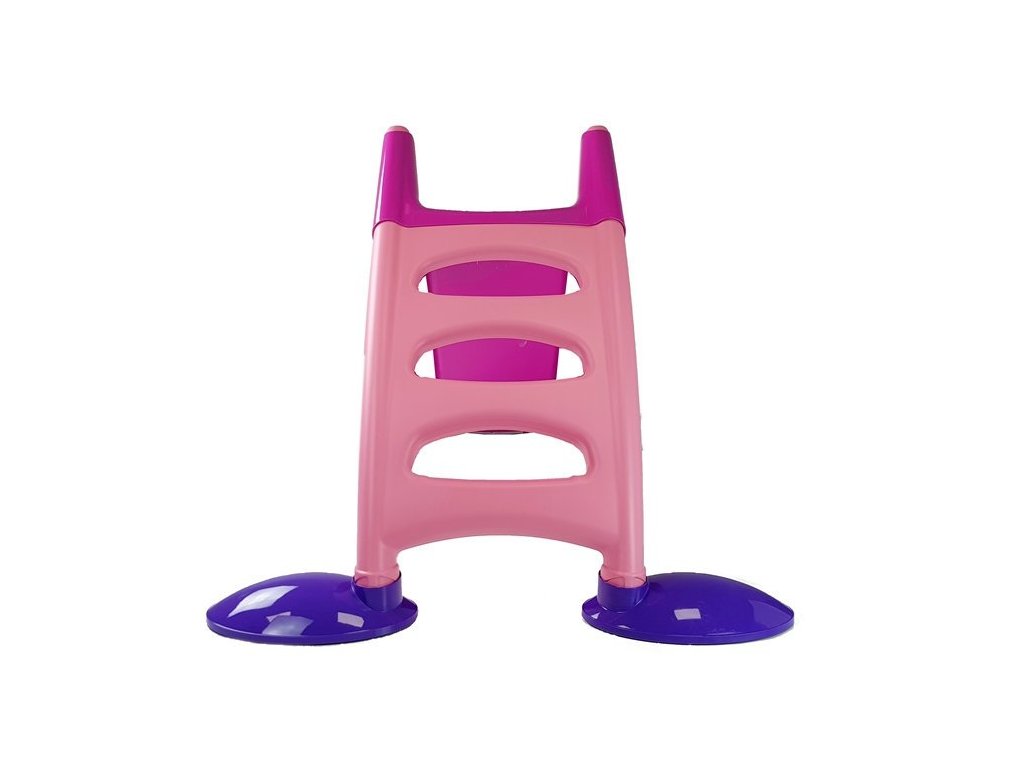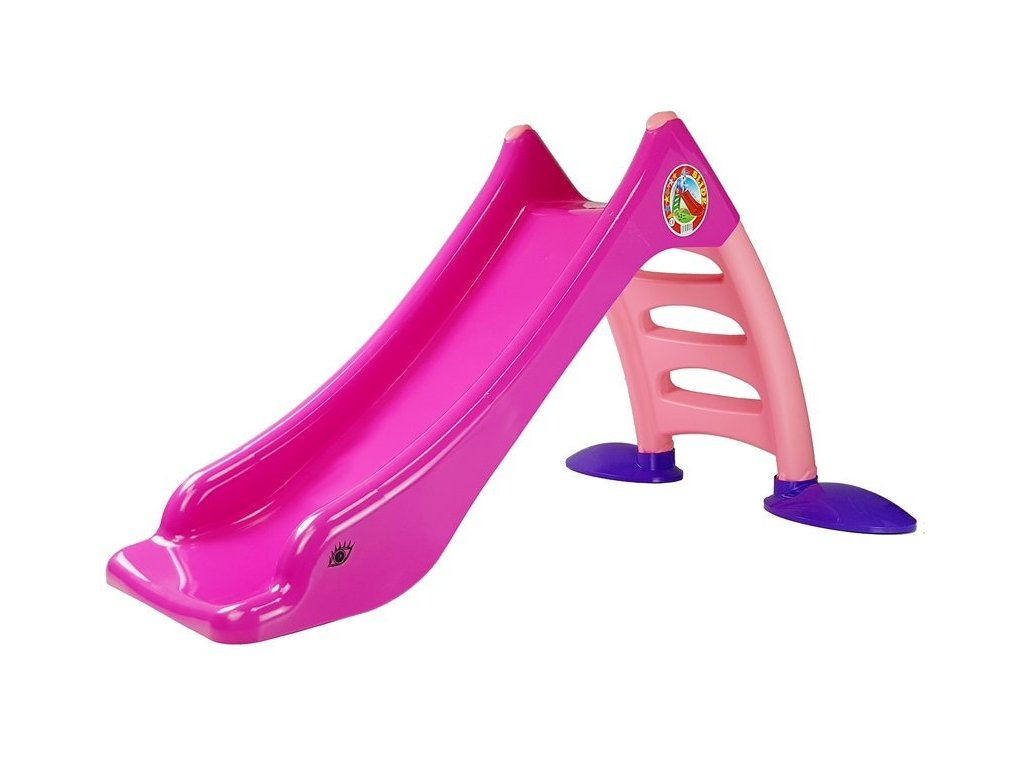 Перфектно допълнение за всяко детско кътче. Детска пързалка 110 см розова разполага с 3 стъпала. Височината от земята е 75 см. Изработена е от безопасни и сертифицирани материали.