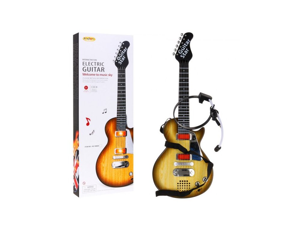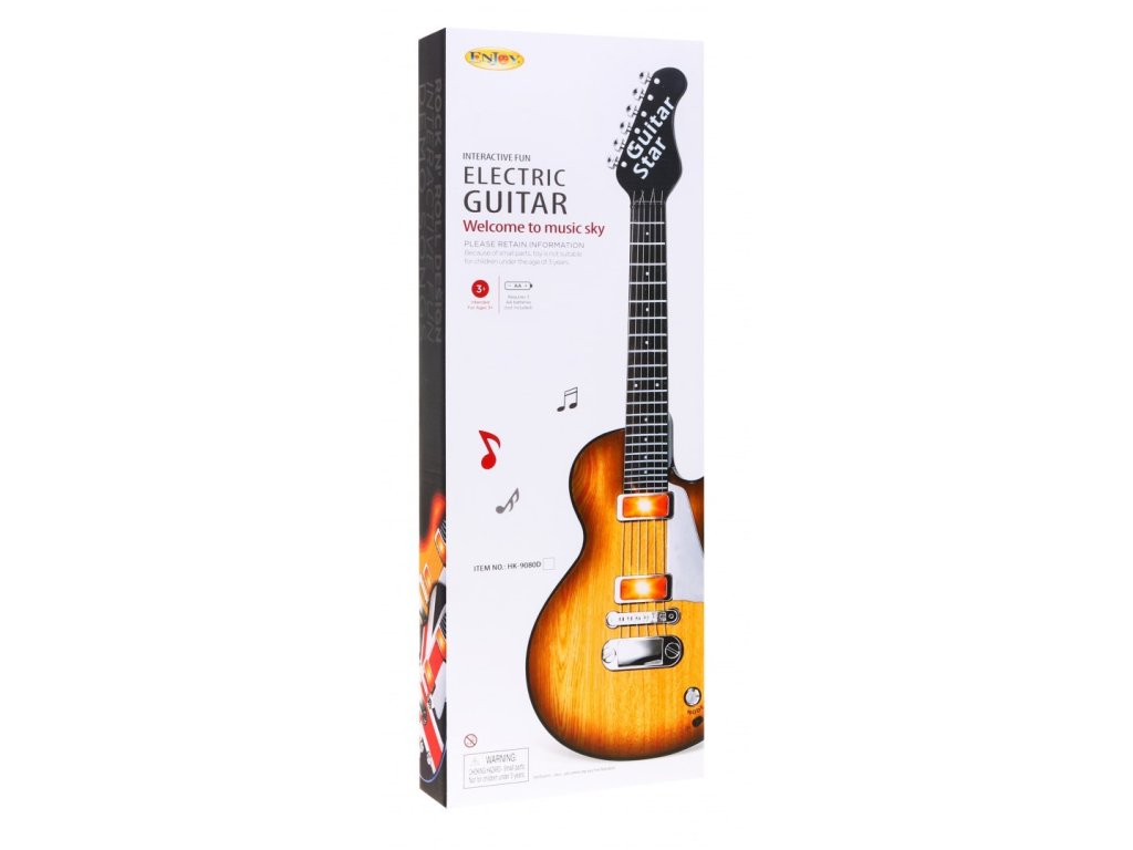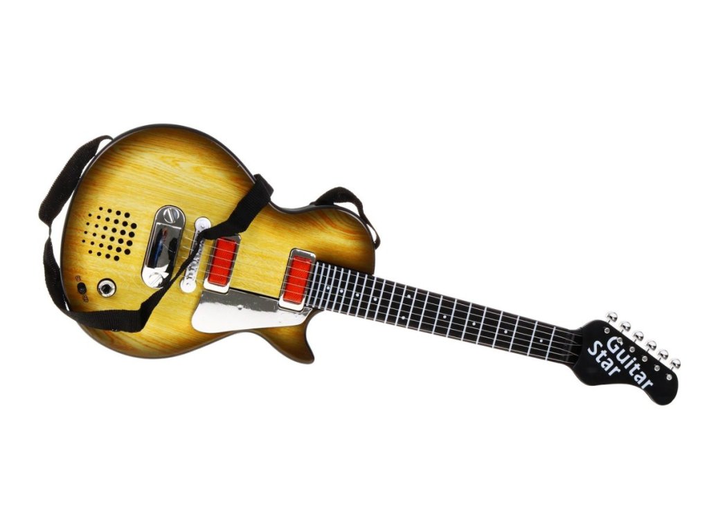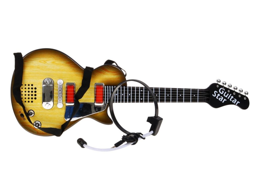 Присъствието на музиката в развитието на детето има определено положителен ефект. Талантът, открит в ранна възраст, има шанс да се развие в бъдеще. Детска рок електрическа китара - дървена е оборудвана с 6 струни и презрамка. На разположение са 2 режима. Първият режим позволява възпроизвеждане на готов бекграунд с рок музика. Вторият режим е предназначен за свирене, като децата могат да се забавляват пълноценно. В комплекта са включени слушалки с микрофон.