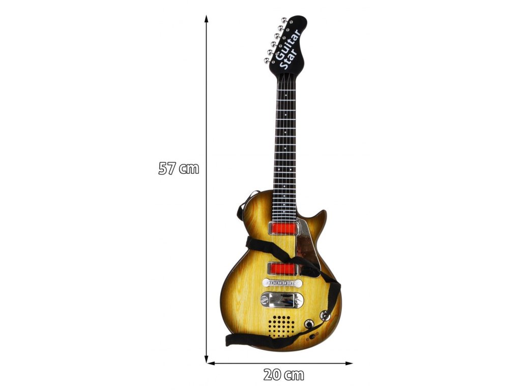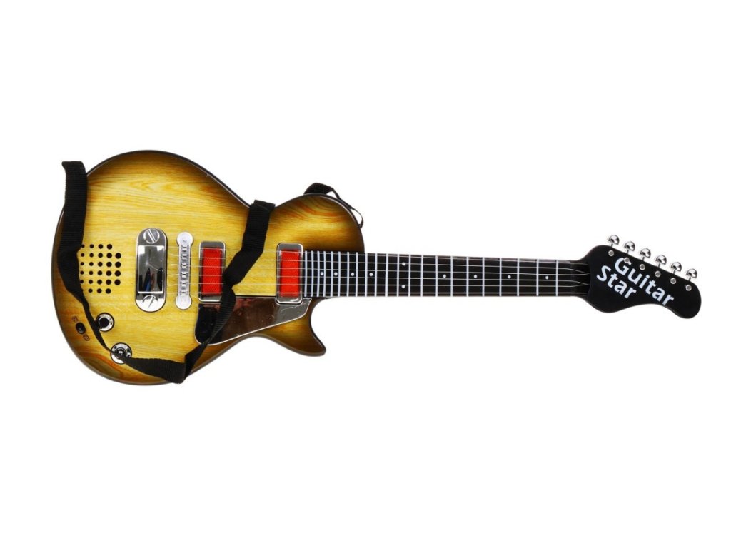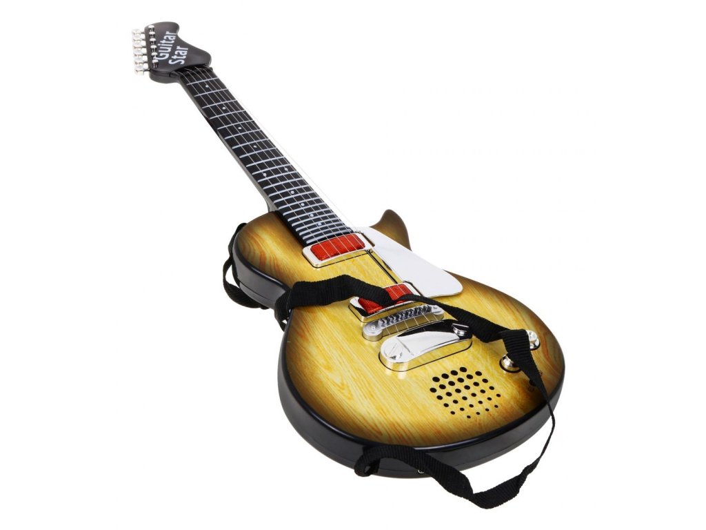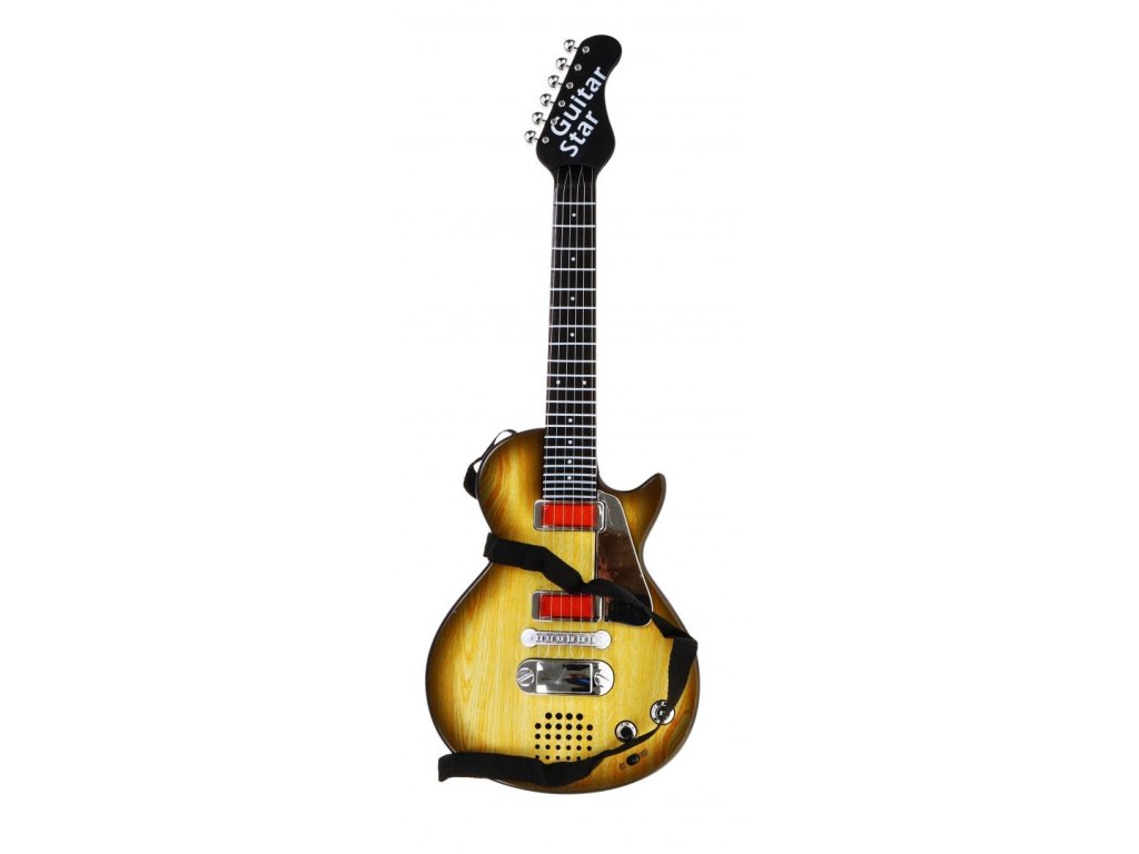 Присъствието на музиката в развитието на детето има определено положителен ефект. Талантът, открит в ранна възраст, има шанс да се развие в бъдеще. Детска рок електрическа китара - дървена е оборудвана с 6 струни и презрамка. На разположение са 2 режима. Първият режим позволява възпроизвеждане на готов бекграунд с рок музика. Вторият режим е предназначен за свирене, като децата могат да се забавляват пълноценно. В комплекта са включени слушалки с микрофон.