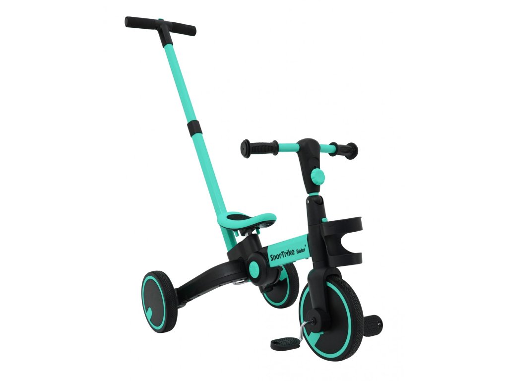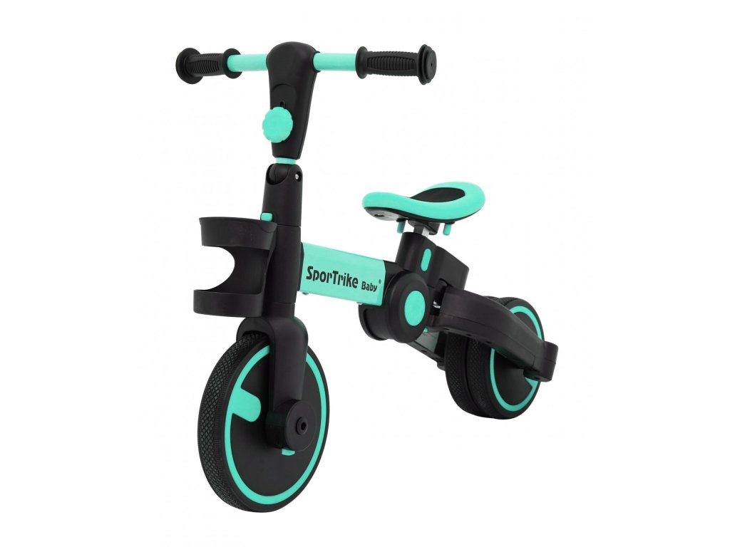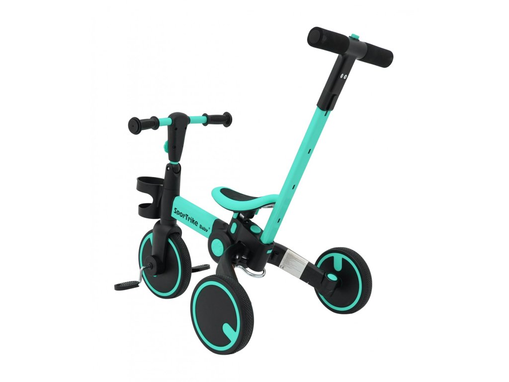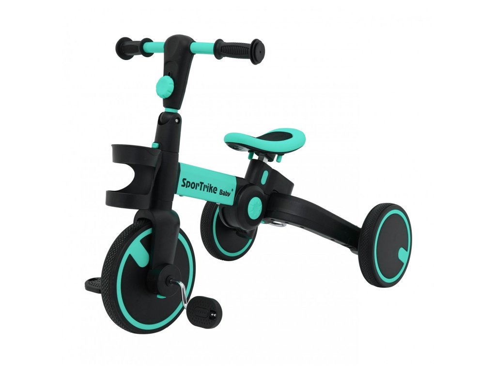 Детска триколка и баланс колело 3в1 Спортрайк синьо насърчава физическата активност при малките деца. Елегантна рамка, удобна мека седалка, регулируема на две нива по височина, и гумени дръжки на кормилото гарантират комфортно каране. Педалите и прикачващата се дръжка за бутане лесно се свалят. Триколката е оборудвана с държач за бутилка и гумирани колела.
