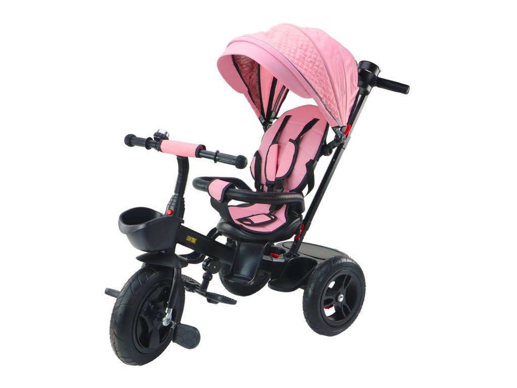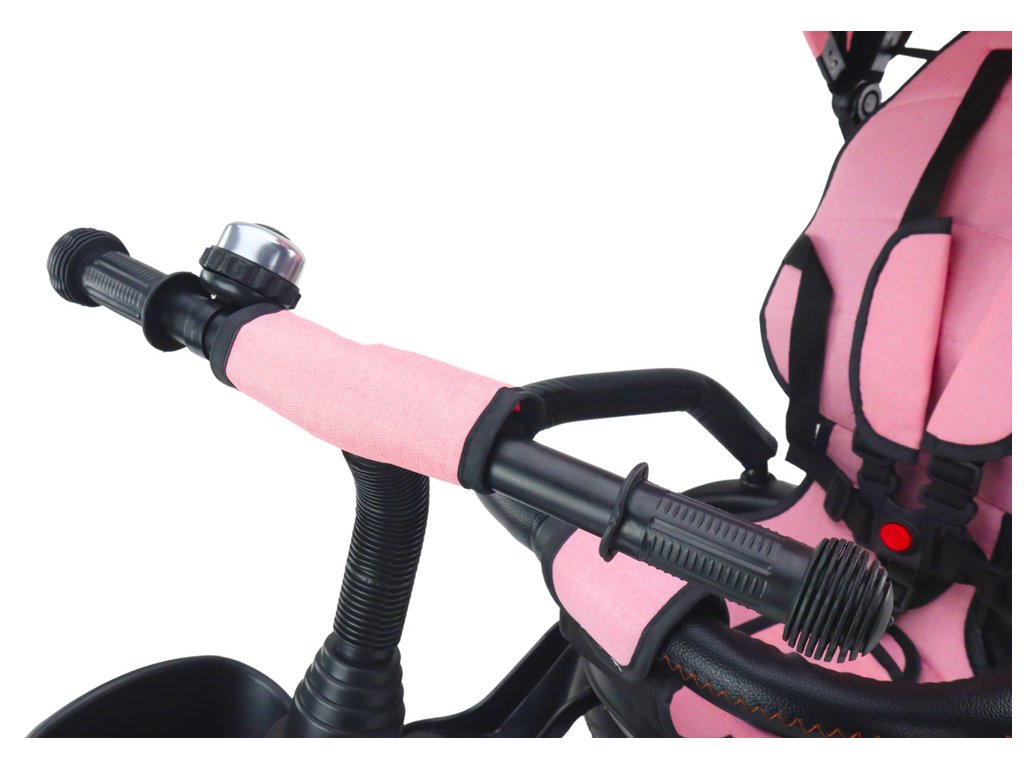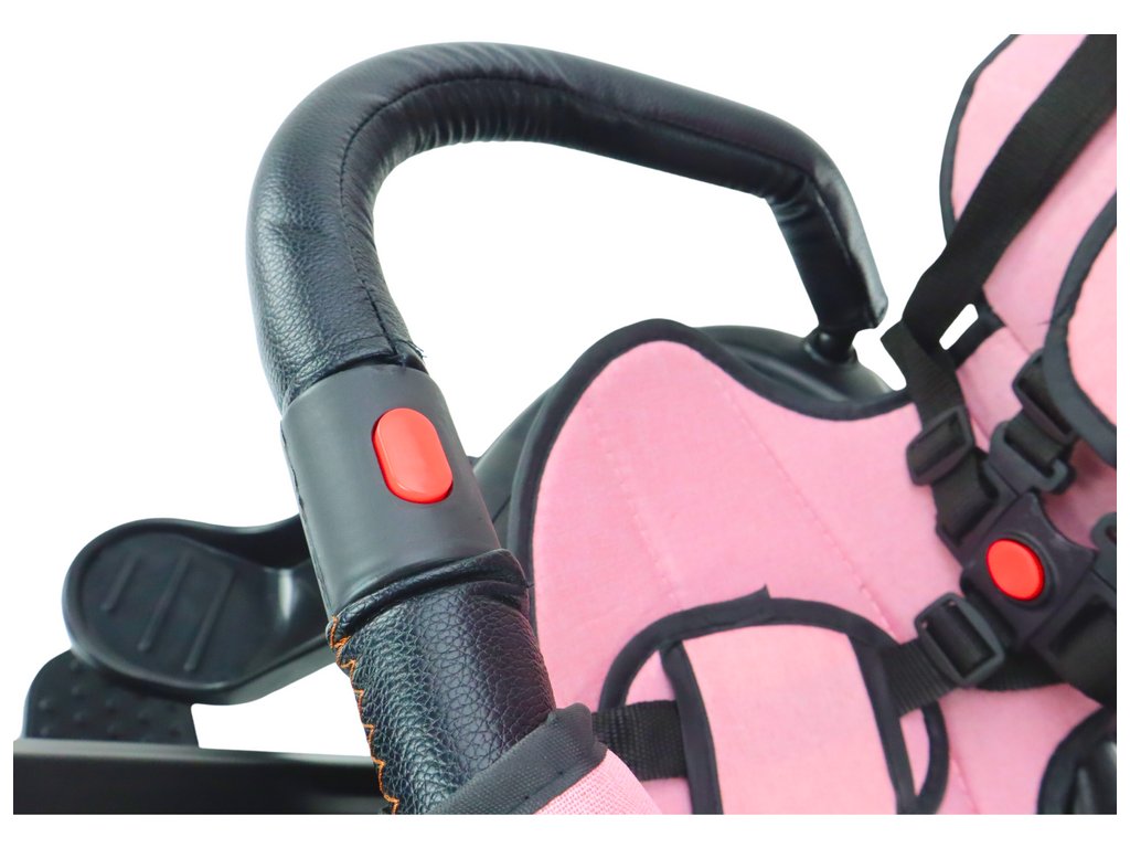Здрава детска триколка, която отговаря перфектно на нуждите на всяко малко дете. С модела Детска триколка PRO550 розова вашето дете ще се влюби в карането на колело и прекарването на време на чист въздух, което ще има положителен ефект върху неговото развитие и здраве. Представената триколка е многофункционална и се наглася според растежа на вашето дете – без необходимостта от смяна на цялото оборудване с ново. С напредването на възрастта на детето може да се отдели дръжката, давайки възможност на детето да кара самостоятелно. Качествените помпещи гуми осигуряват комфортно каране, а петточковите предпазни колани и задната спирачка повишават безопасността на детето при ползване на триколката.