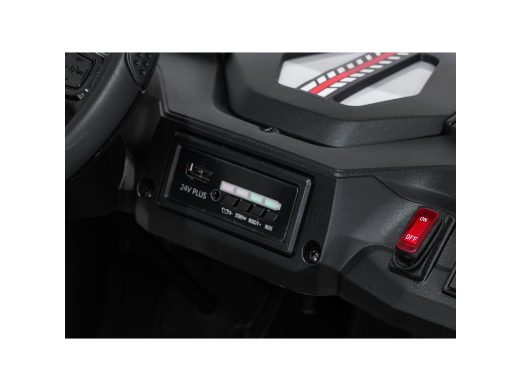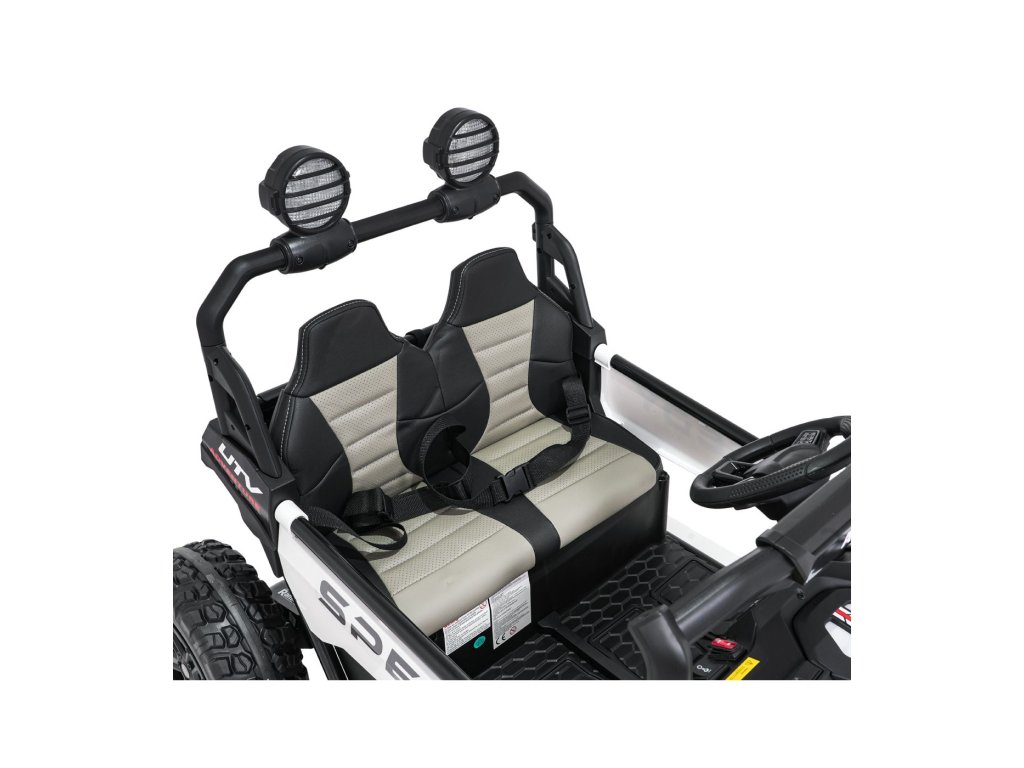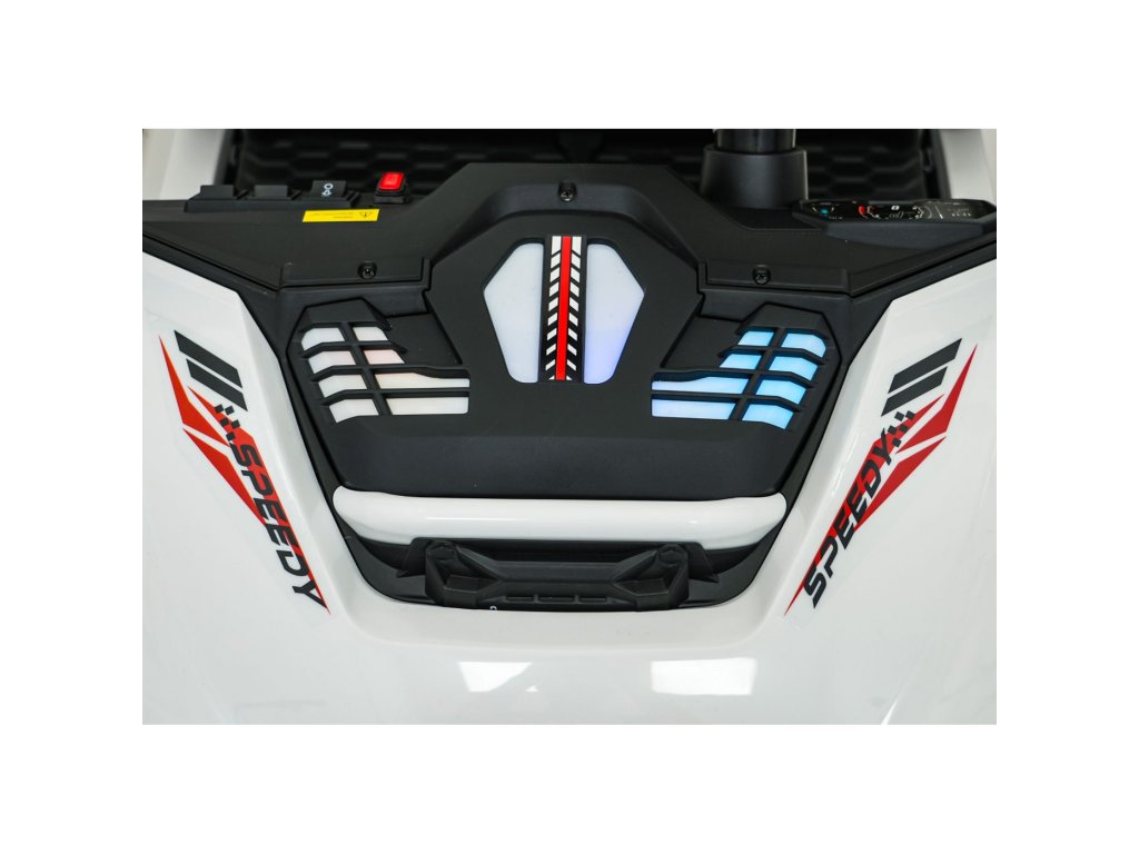 Част от оборудването е музикален панел с MP3, USB, AUX, Bluetooth връзка и предварително записани мелодии. Благодарение на просторната двуместна седалка от еко кожа и задния багажник, Buggy SPEEDY е чудесен партньор за всяко пътуване.