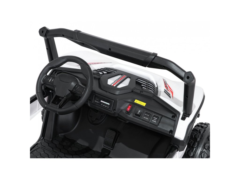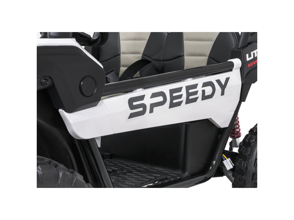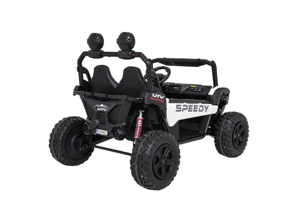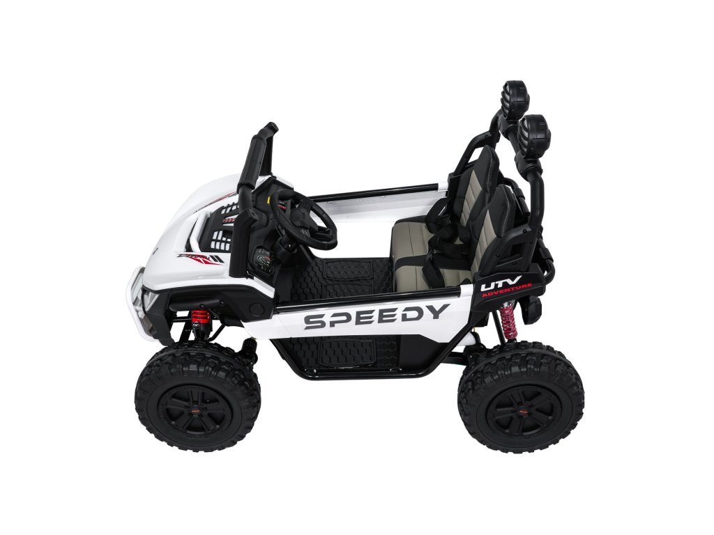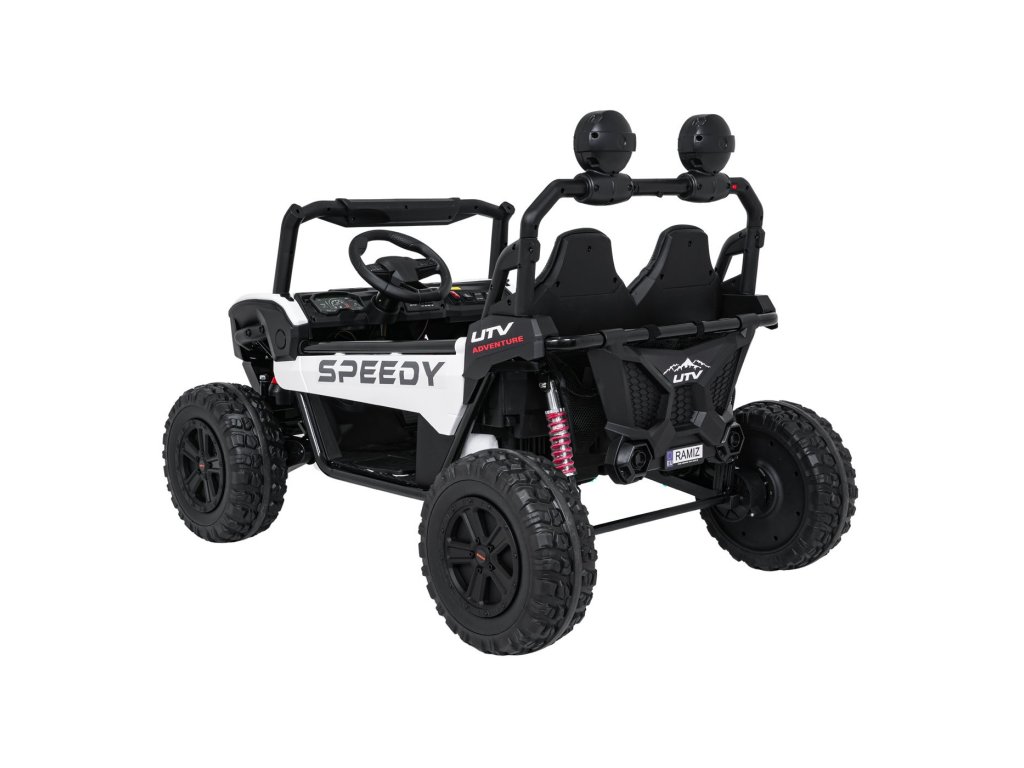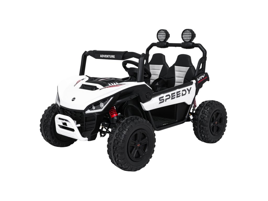 Детската офроуд кола Buggy SPEEDY 4x4 със задвижване на всички колела е идеален избор за малки авантюристи. Четири мощни мотора с обща мощност 800W, меки EVA колела и задни амортисьори осигуряват гладко возене дори и по труден терен. Автомобилът е оборудван с предпазни колани, LED светлини и практично дистанционно управление с функция STOP.