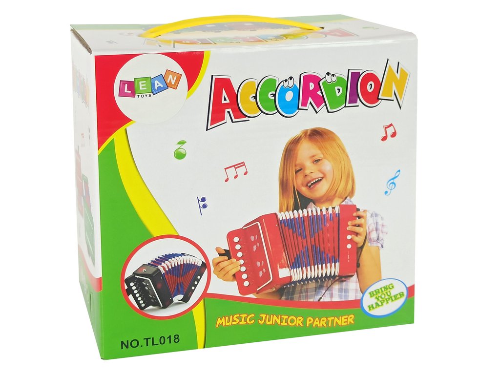 Играчката е подходяща за деца над 3 години. Акордеонът е опакован в цветна кутия, която е идеална за подарък.