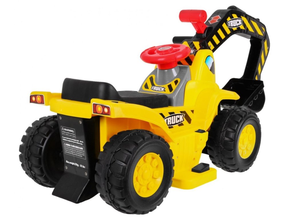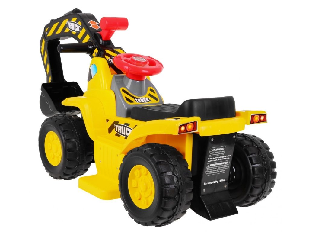 Детски акумулаторен багер, с който детето ви може да играе както вкъщи, така и навън. Превозното средство е захранвано с акумулатор, движи се напред, назад, наляво и надясно. Разполага с големи стабилни колела, изработени от безопасни материали в ярки цветове.