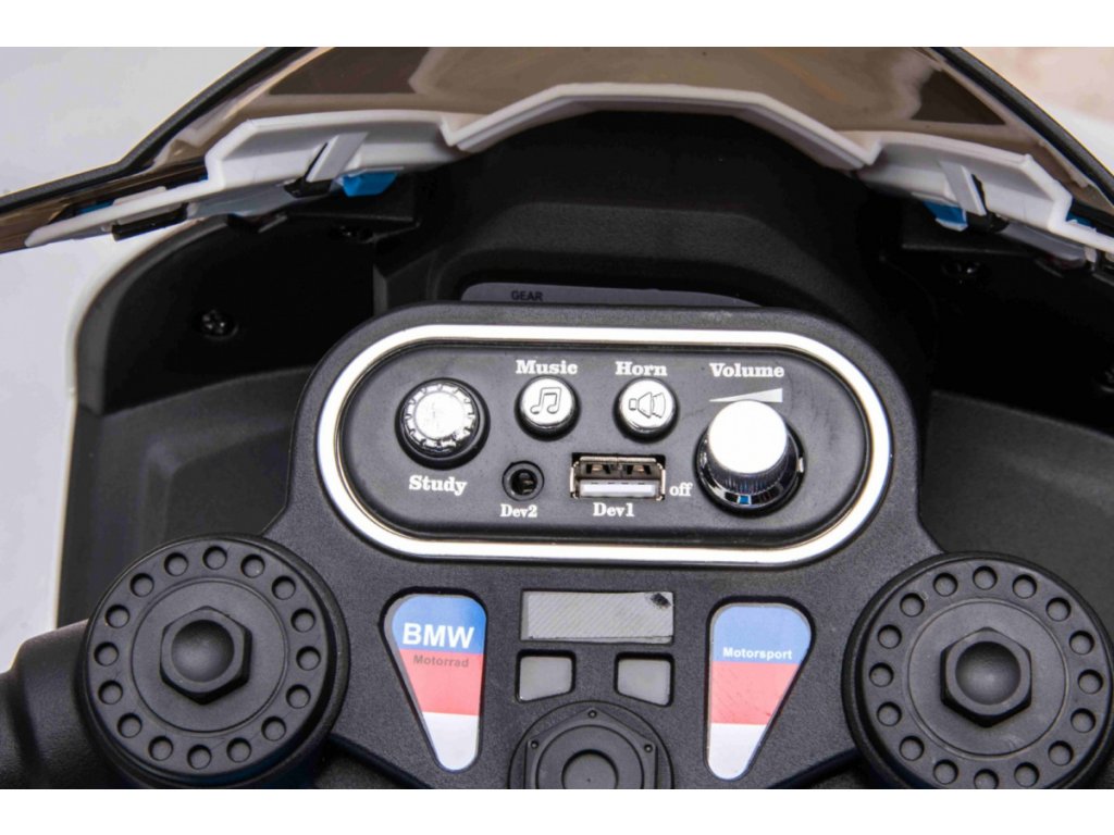 Детски акумулаторен мотор BMW HP4 син се предлага с иновативен дизайн и богато оборудване. Музикален панел е снабден с MP3, AUX и USB входове. Седалката е изработена от мека еко кожа.