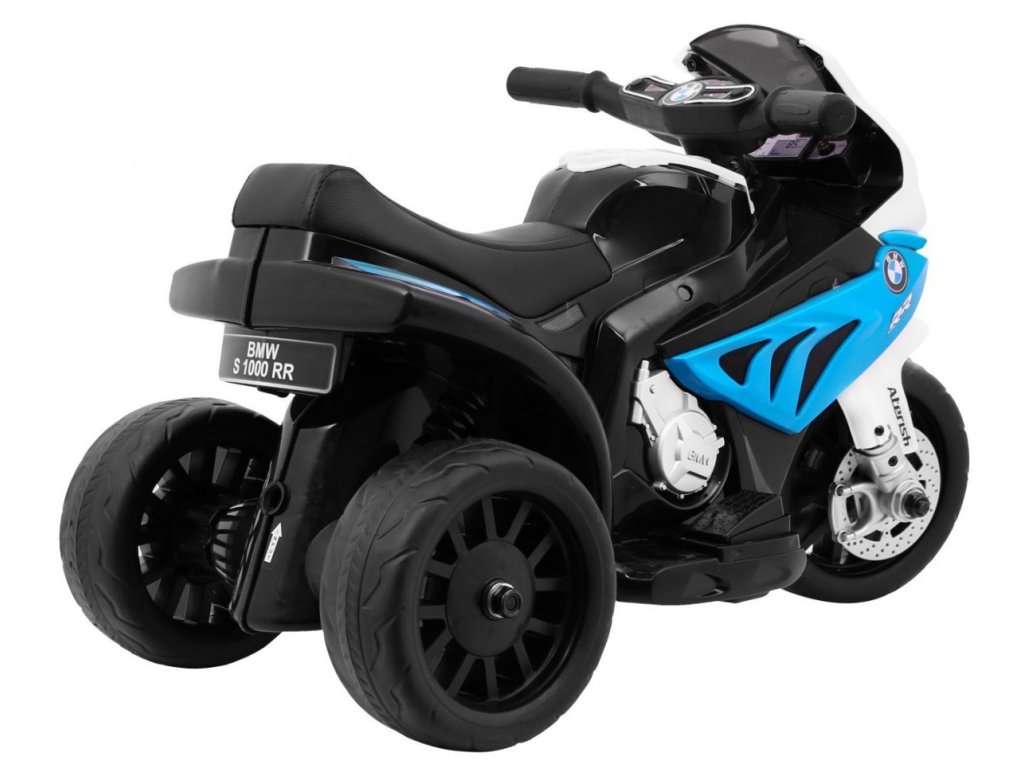 Детски акумулаторен мотор BMW S1000RR триколка синя с лиценз на BMW е отличен избор за семейства с деца за разходки или игра в градината. Като кара детския мотор, детето развива своите умения за управление и баланс. Моторът се движи само напред и е оборудван с ергономично седалка, която осигурява комфорт за детето. Детският мотор също разполага с вградени светлинни ефекти и стилен дизайн, който няма да остане незабелязан. Не е нужно да се притеснявате, че детето ще излезе от полезрението ви. Моторът достига максимална скорост от 2 км/ч. Подходящ е за деца над 18 месеца и е сертифициран според европейския стандарт за безопасност CE.