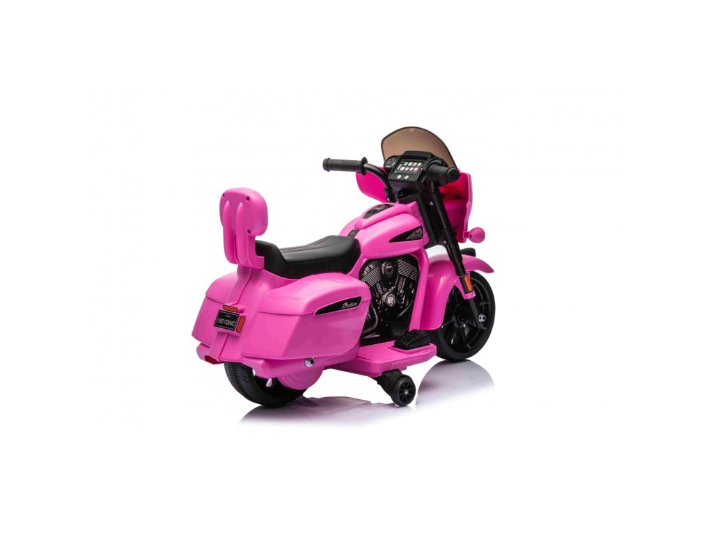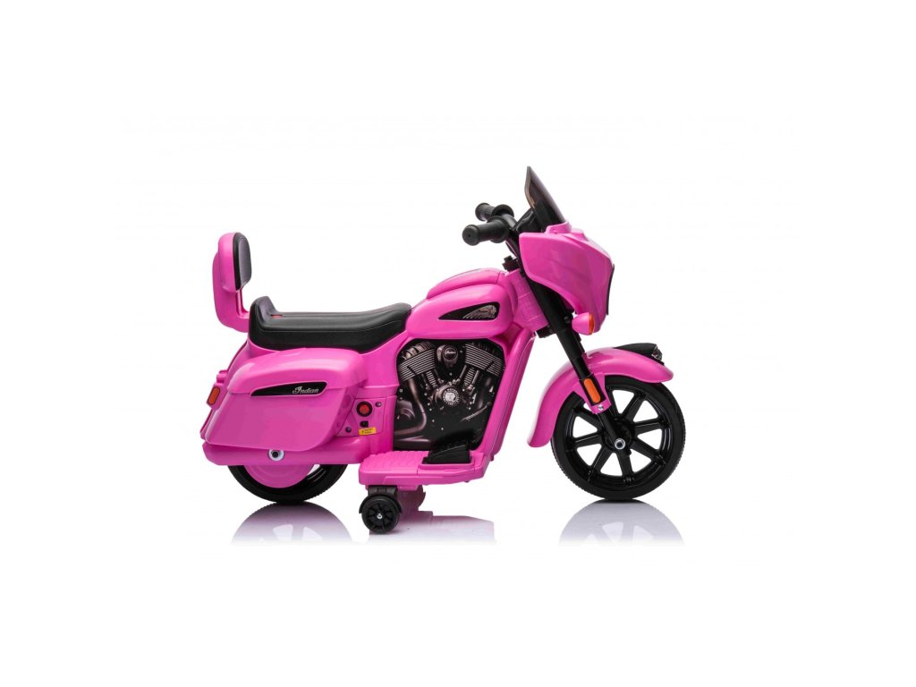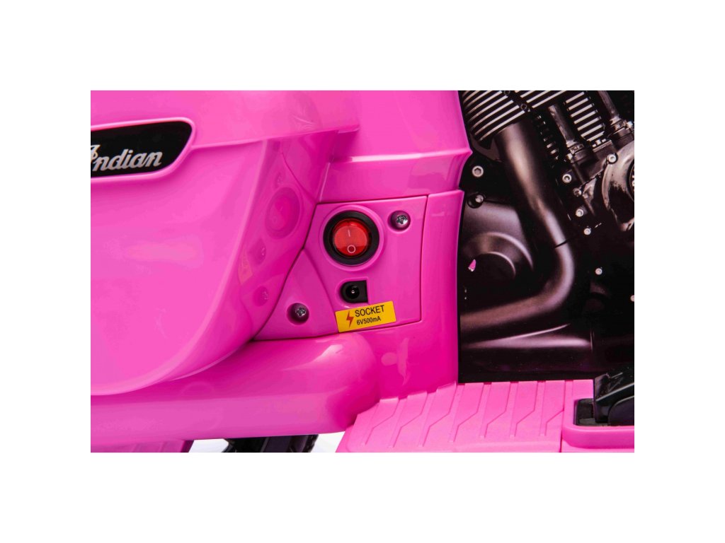 Детският акумулаторен мотор Chopper INDIAN розов е идеален аксесоар за семейства с деца, които обичат да излизат на разходка или да се забавляват в градината. Карайки този детски мотор, детето развива своите умения за управление и равновесие. Моторът се движи само напред и е оборудван със седалка, която осигурява комфорт на детето. Детският мотор разполага и с вградени светлинни ефекти, а стилният дизайн гарантира, че детето няма да остане незабелязано. Няма повод за притеснение, че детето може да излезе от полезрението ви.