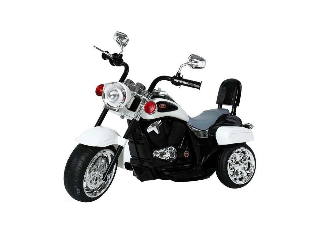 Детският акумулаторен мотор чопър бял е оборудван със светлинни и звукови ефекти. Моторът е подходящ за деца над 3 години и притежава европейски сертификат за безопасност CE. Под наблюдението на родителите могат да го управляват и по-малки деца.