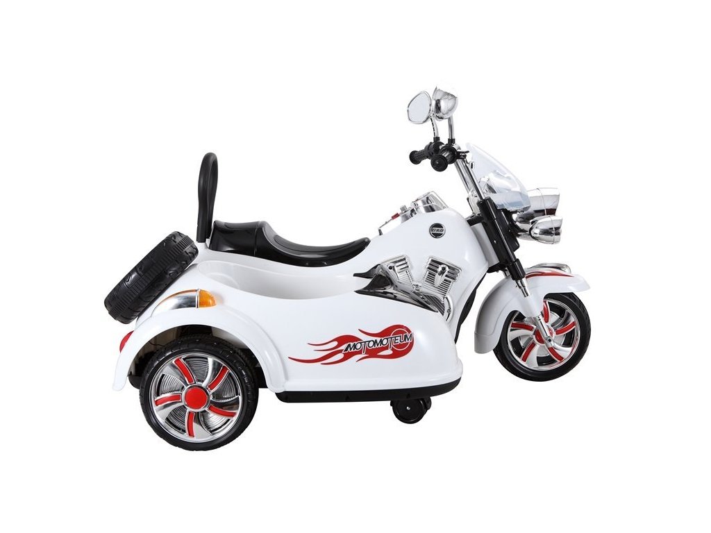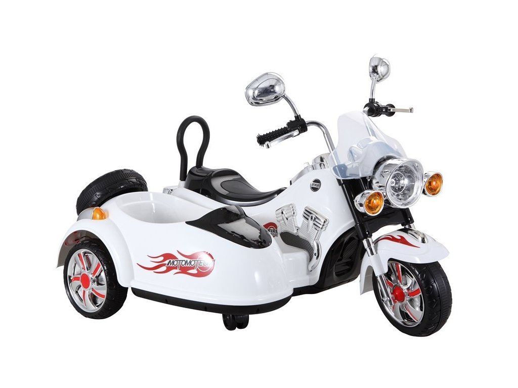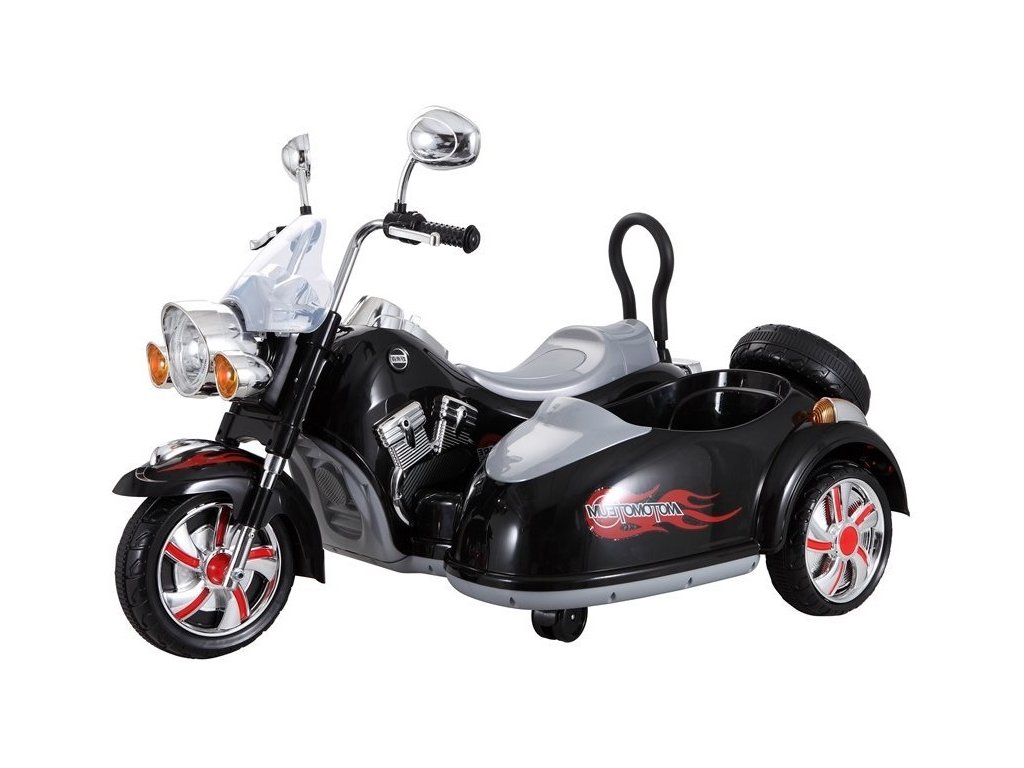 Детски акумулаторен мотор Чопър с резервна количка черен с мощен мотор 2x45W. Детето може да кара с скорост от 3 до 5 км/ч, а в прикрепената към мотора количка може да превозва пътник до 10 кг. Моторът е оборудван с аудио панел, който възпроизвежда музика във формат MP3. За по-добра видимост детето може да използва предни LED светлини.