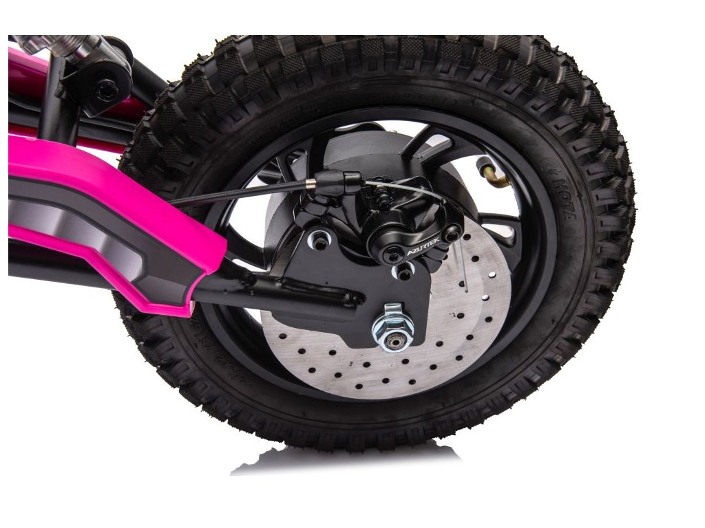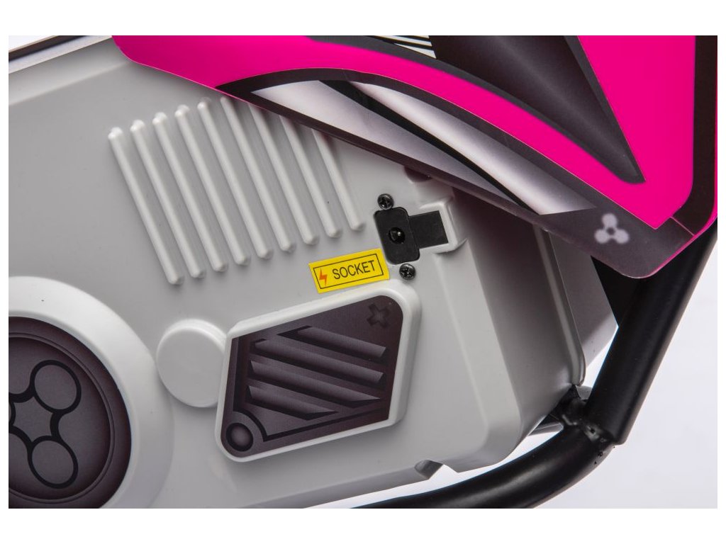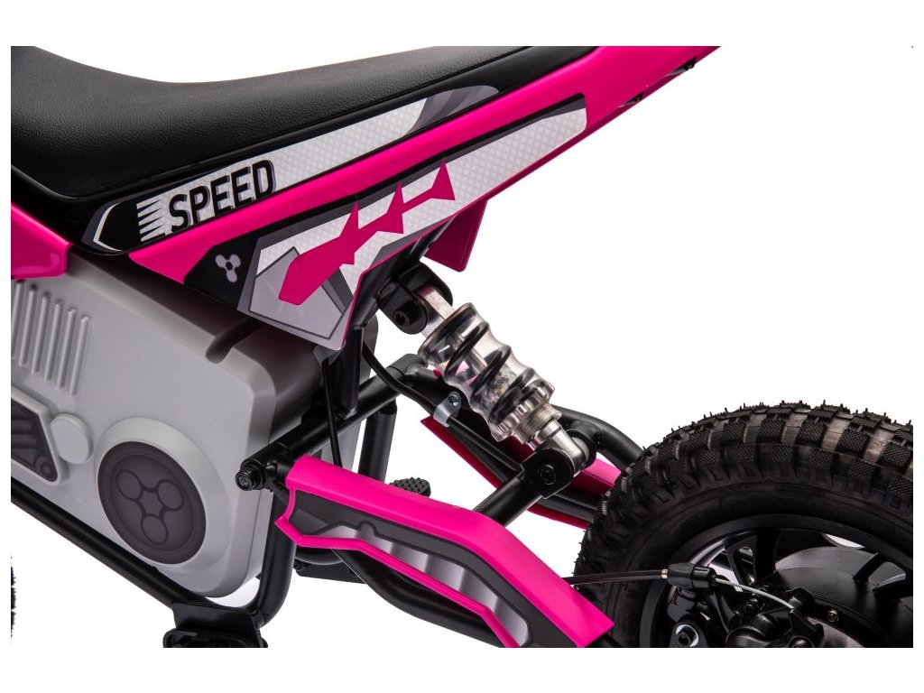 Детски акумулаторен мотор Cross 350W 36V розов идва с мощен електрически мотор и батерии. Детето сяда на удобно оформеното седало, покрито с еко кожа.