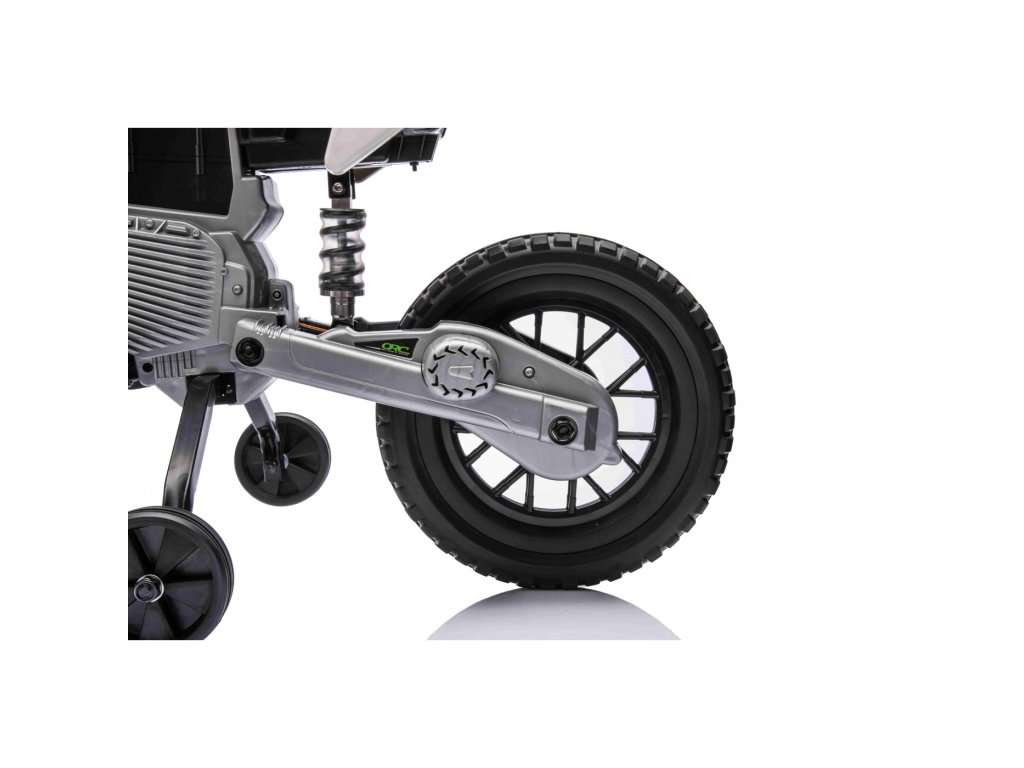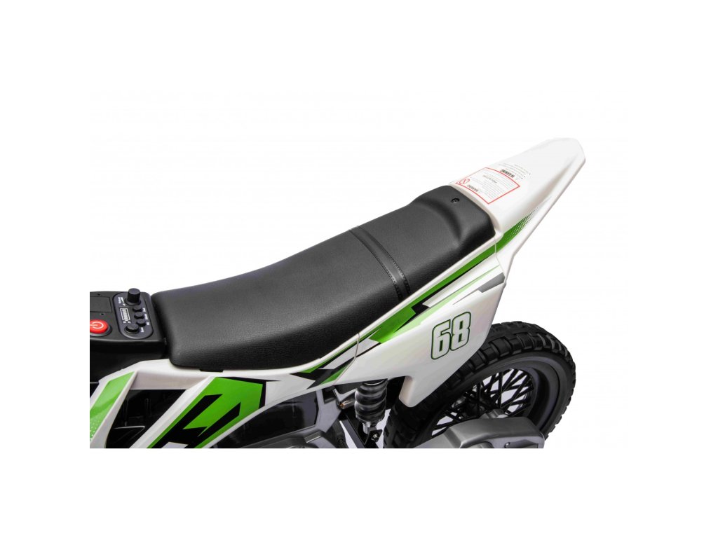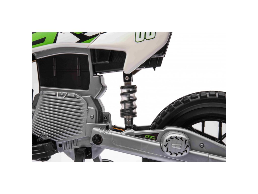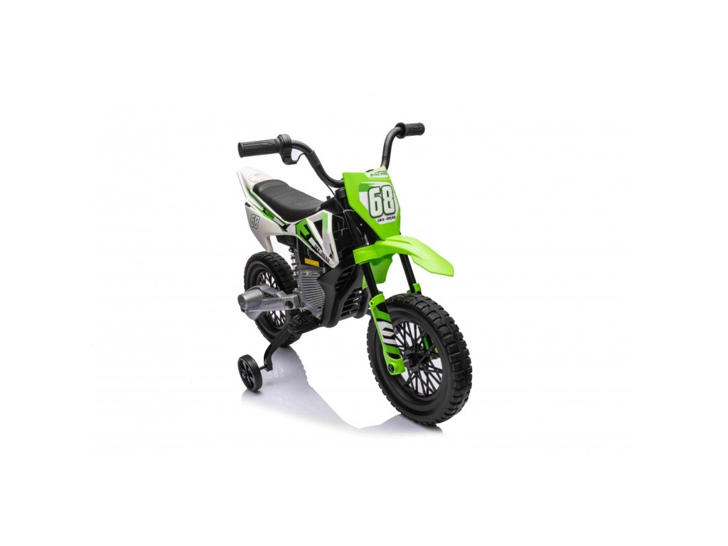 Детски акумулаторен мотор Cross Pantone 361C зелен разполага с два мотора с мощност 30W и акумулатор с капацитет 12V 4,5Ah. Моторът е оборудван с леки EVA пяни колела, които се адаптират към различни повърхности. За по-малките водачи моторът разполага с странични помощни колела, които могат лесно да се свалят, когато детето порасне.