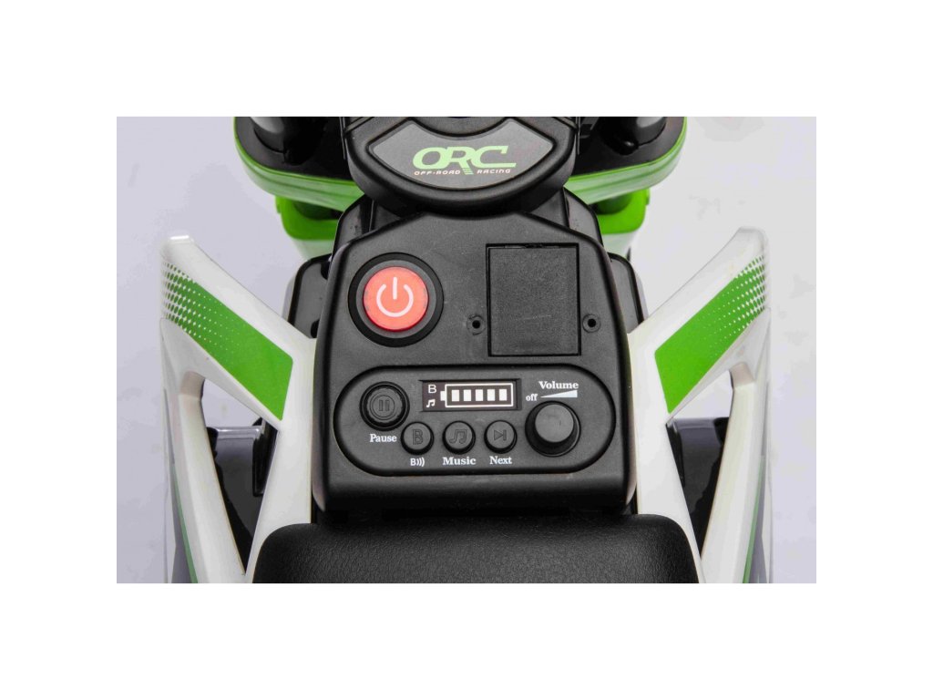 Моторът има музикален панел с MP3, Bluetooth и вградени мелодии. Безопасността на детето е гарантирана благодарение на лесното управление. Моторът има само един педал за газ и при отпускане на педала моторът се спира автоматично. Започва с плавен старт.