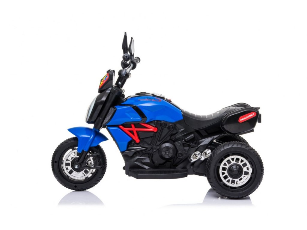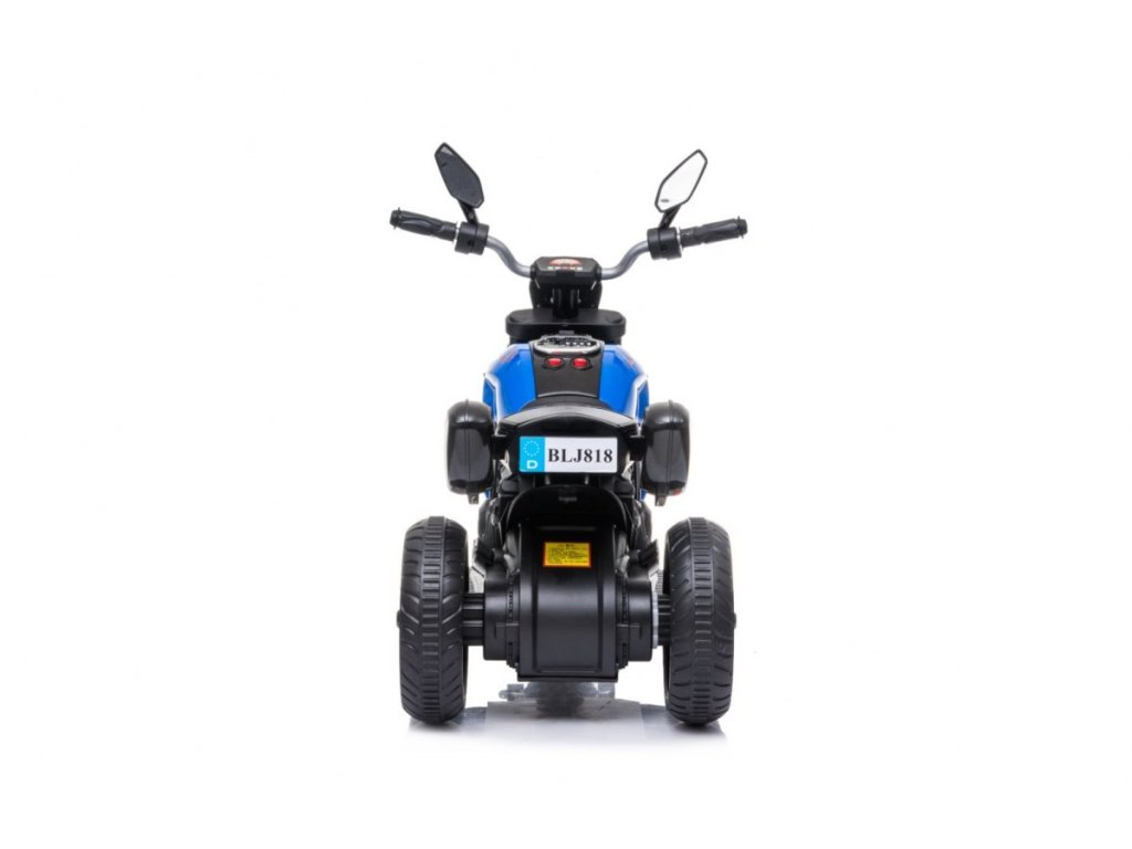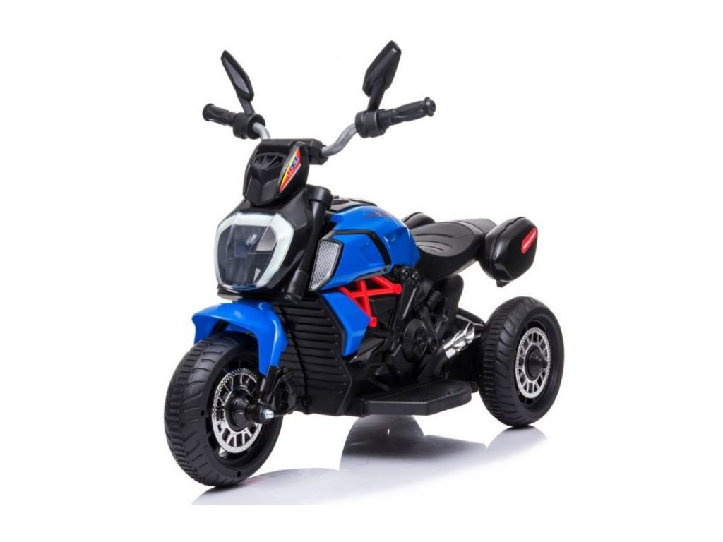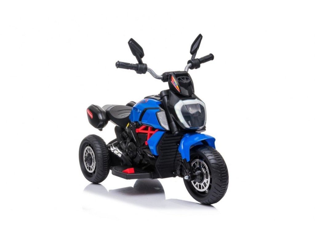 Детски акумулаторен мотор Fast Tourist синьо е предназначен за най-малките деца от 1 до 3 години. Сред оборудването му са предни фарове, колела с гумена лайсна и музикален панел с входове за SD карта, AUX и USB. Разполага с функция за автоматично спиране, която се активира веднага щом кракът бъде свален от педала за газ.