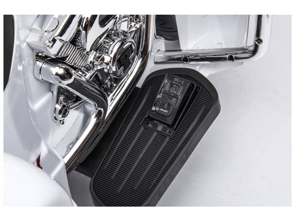 Детски акумулаторен мотор Голдуинг бял е оборудван с два електрически мотора с общ мощност 90W, меки Eva гуми и удобна седалка от мека екокожа.