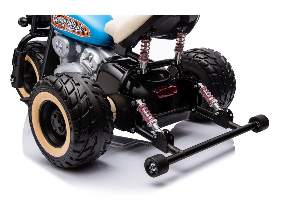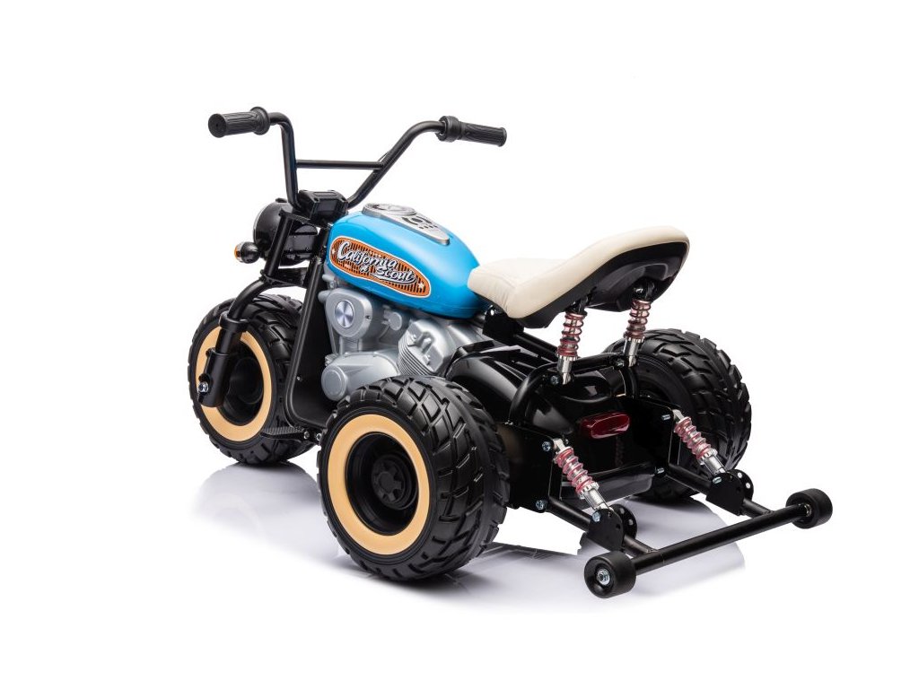 Детски акумулаторен мотор LL6688 24V 2x800W синьо е оборудван с тихи гумени EVA колела, които не създават шум по време на каране. Детето се настанява удобно на ергономично оформено седалка, облечена в еко кожа, а удоволствието от возенето се допълва от звукови ефекти, които могат да се пускат чрез вход за USB.