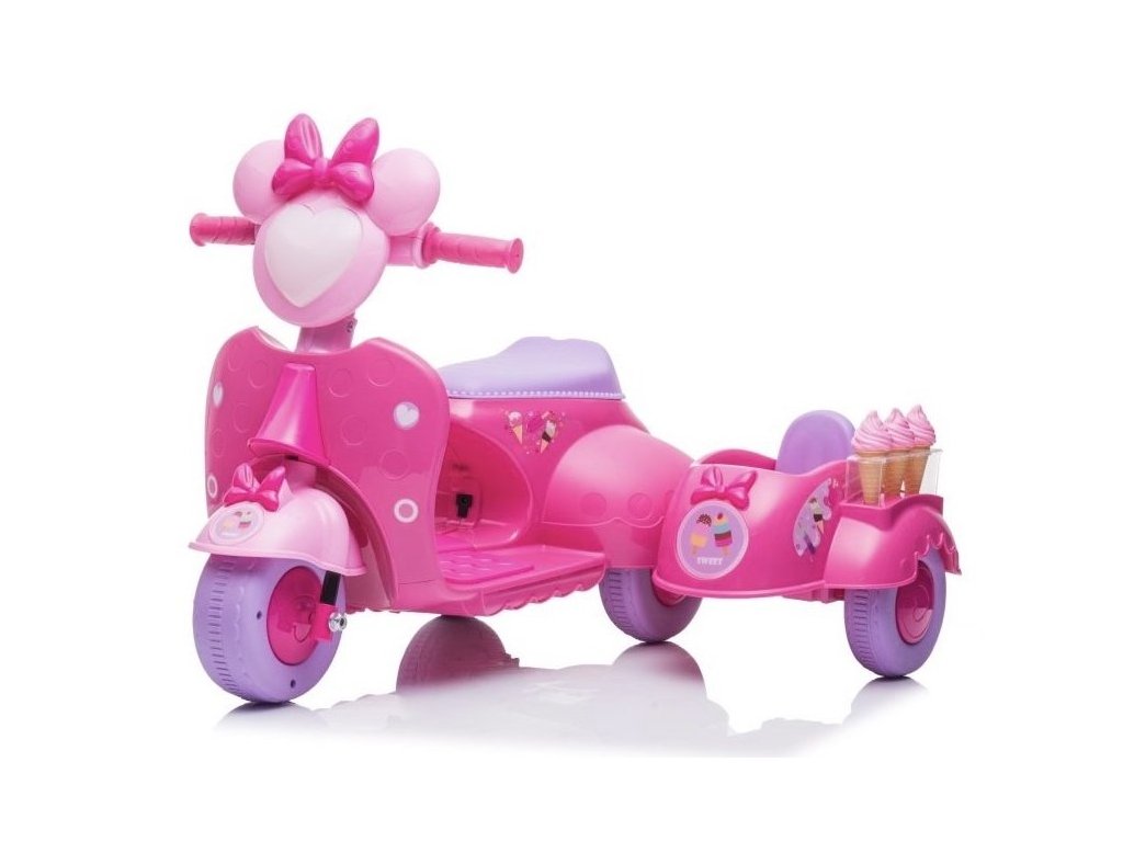 Детски акумулаторен мотор скутер сладолед розов