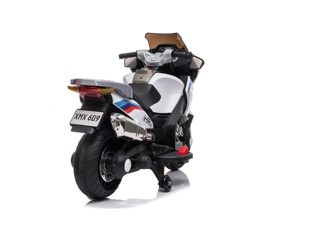 Детски акумулаторен мотор XMX609 бял е отлично допълнение за семейства с деца за разходки или забавления в градината. Акумулаторният мотор за малки състезатели е изработен от качествен твърд пластмасов материал. Благодарение на шофирането с този детски мотор, детето развива своите умения за управление и баланс. Моторът се движи напред и назад и разполага с ергономично седалка, която осигурява комфорт на детето. Моторът издържа около час каране без презареждане. Зарядното устройство за мотора е включено в комплекта. Моторът е предназначен за деца над 3 години и е оборудван с LED светлини, за да бъде детето видимо дори при намаляваща светлина, защото с този детски мотор то ще иска да прекарва часове наред. Моторът развива скорост от 3 до 7 км/ч. Моторът е сертифициран с европейския стандарт за безопасност CE.