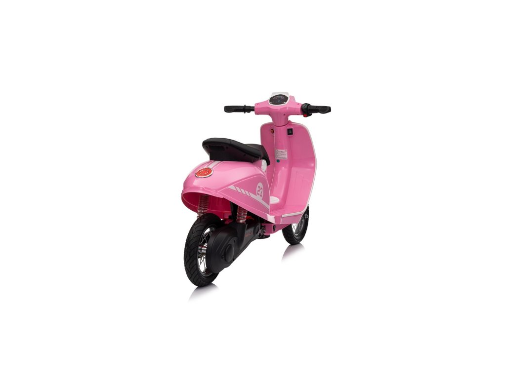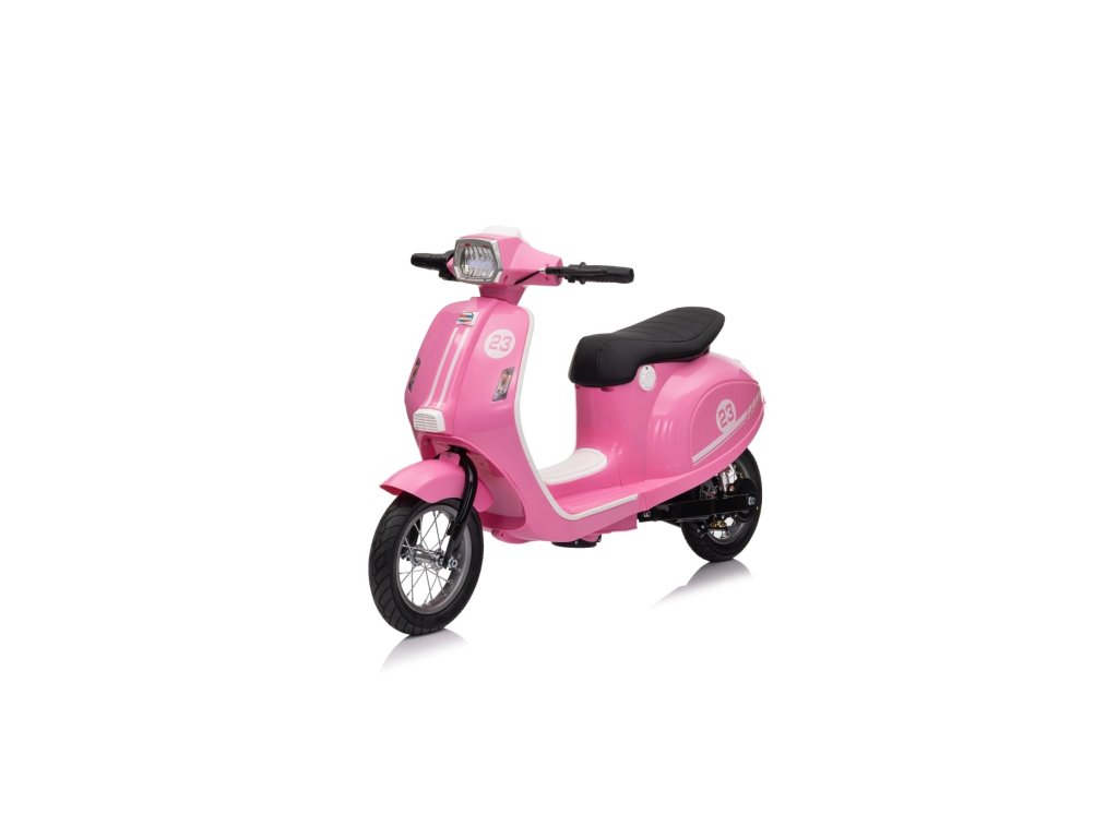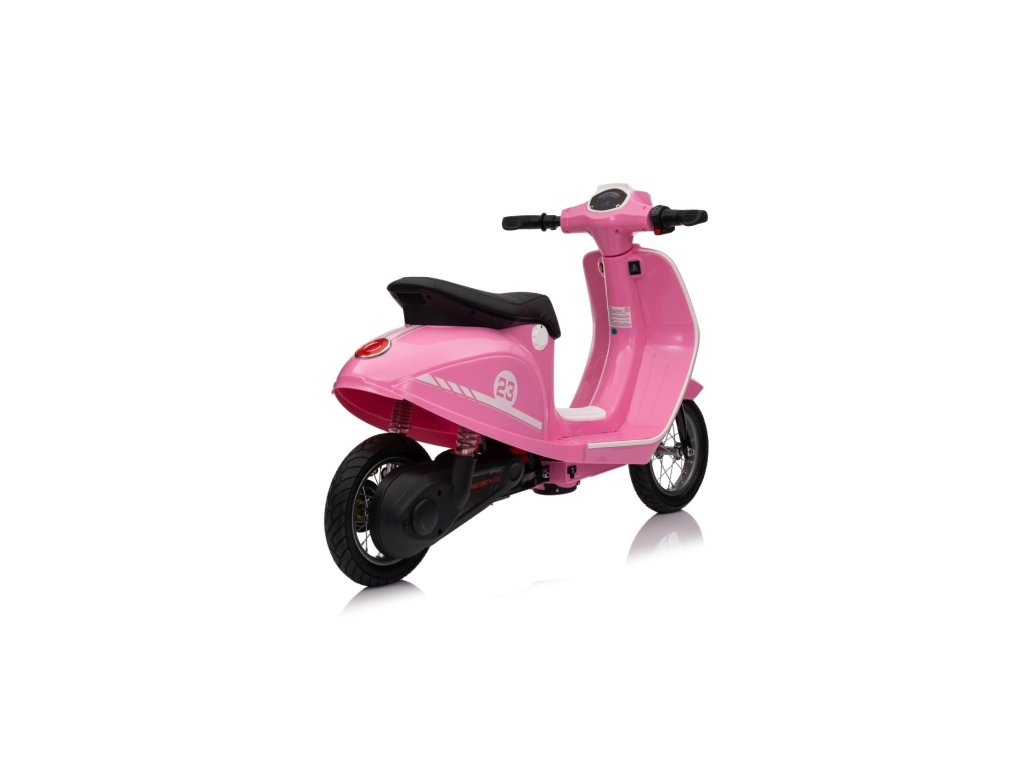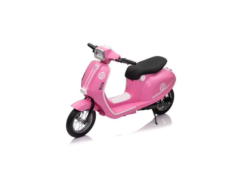 Стилен детски акумулаторен скутер Ретро 23 розов предлага уникално усещане при каране с характерния си ретро дизайн и съвременни технологии. Скутерът е оборудван с мощен 350W мотор, надуваеми гуми и окачване, което осигурява комфортно и безопасно пътуване.