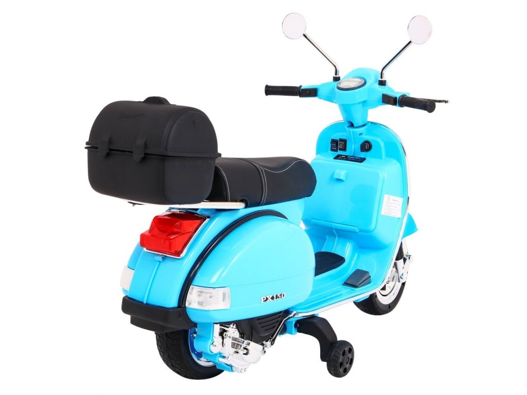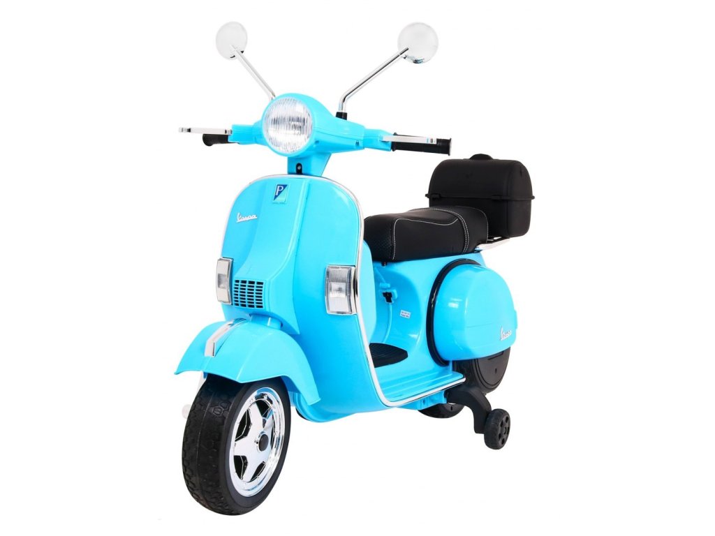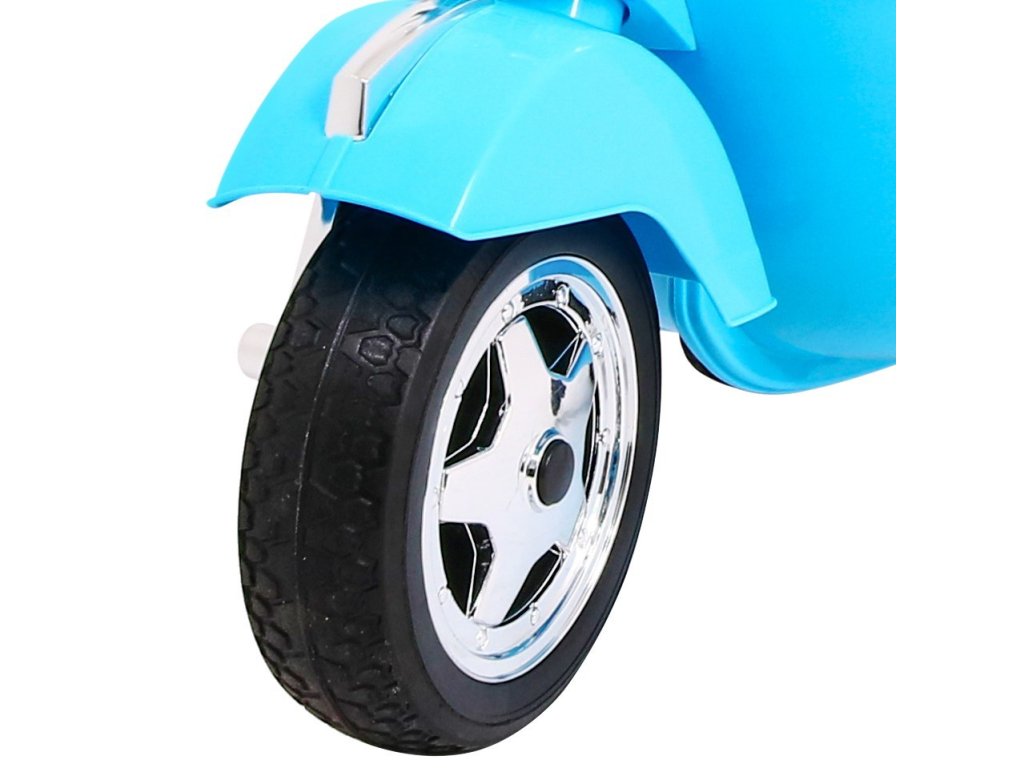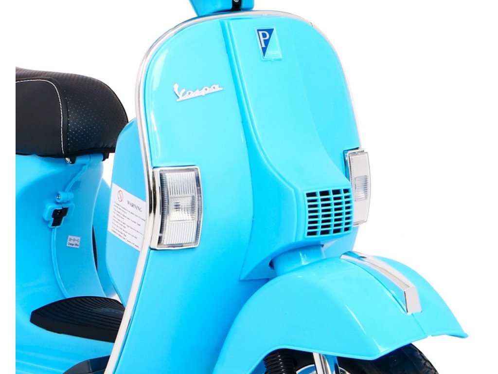 Кой не познава скутер с марка Vespa? Този легендарен скутер може да управлява и Вашето дете благодарение на този лицензиран модел. Скутерът е оборудван с качествено седало, покрито с мека еко кожа и меки EVA гуми. Към всичко това има красиви предни и задни LED светлини и може да възпроизвежда MP3 файлове, така че детето да слуша любимата си музика по време на каране и едновременно да усъвършенства шофьорските си умения.