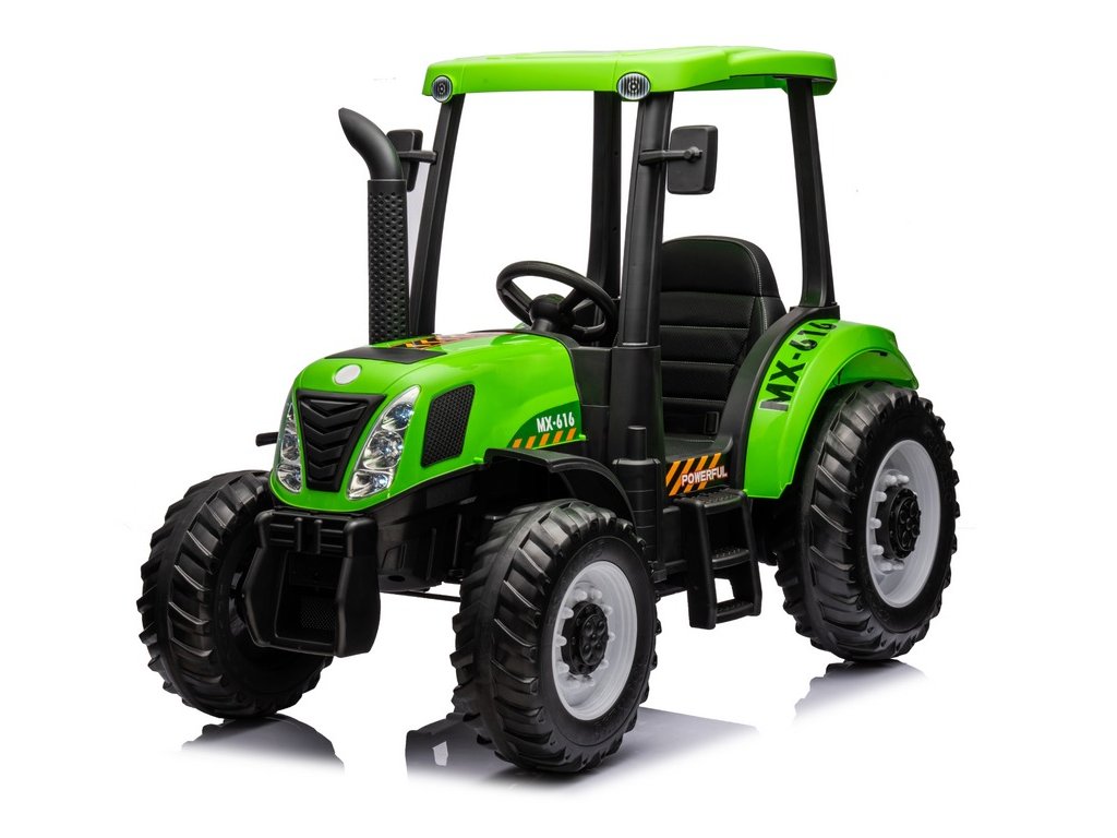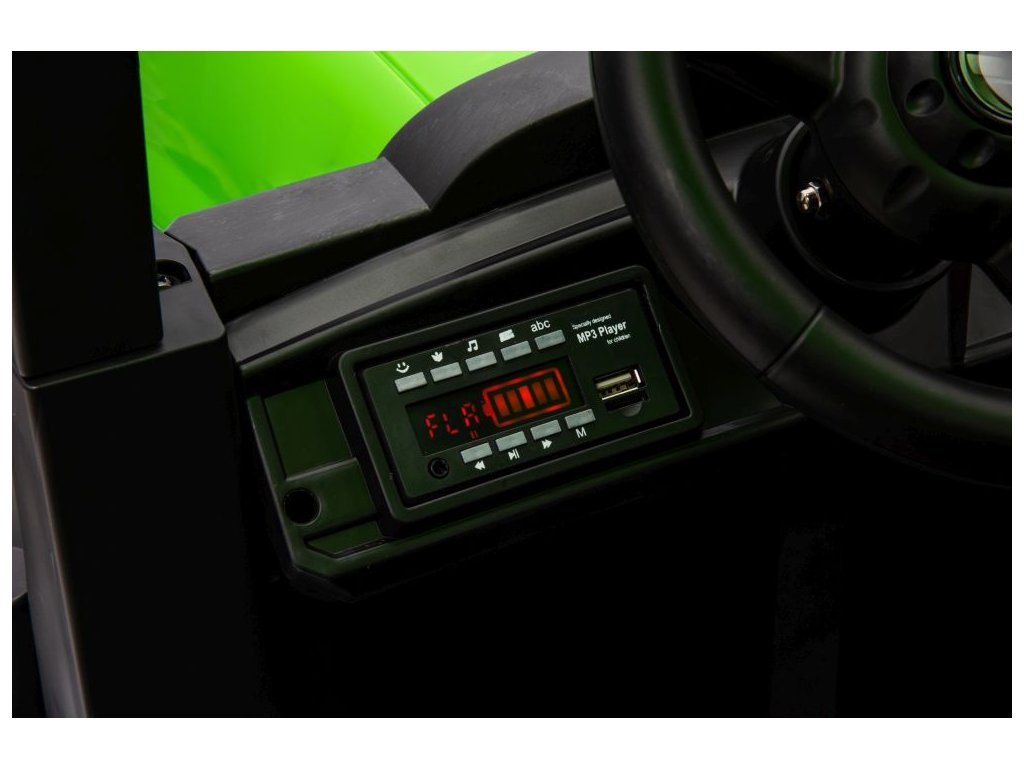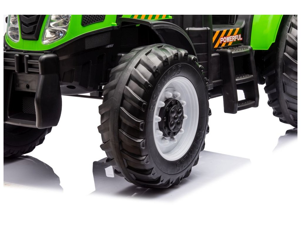 Детски акумулаторен трактор A011 24V 400W зелен е незаменим в детската градина или на двора. Превозното средство се захранва от две батерии с капацитет 12V 10Ah. Максималното допустимо тегло на детето е 35 кг. По време на каране малчуганът ще се зарадва на музикалния панел с MP3 и USB.