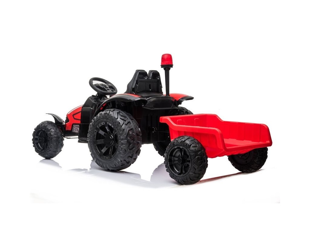 Детски акумулаторен трактор с ремарке камион червен е предназначен за всички деца с тегло до 30 кг. Колелата от пяна EVA са безшумни и се адаптират към различни видове терен. Детето сяда на удобно оформеното седалка от мека еко кожа. Карането се допълва с аудио и светлинни ефекти. Детският трактор е голям, мощен и изработен от висококачествен пластмасов материал в модерен стил, който ще зарадва най-малките фенове на моторните превозни средства.