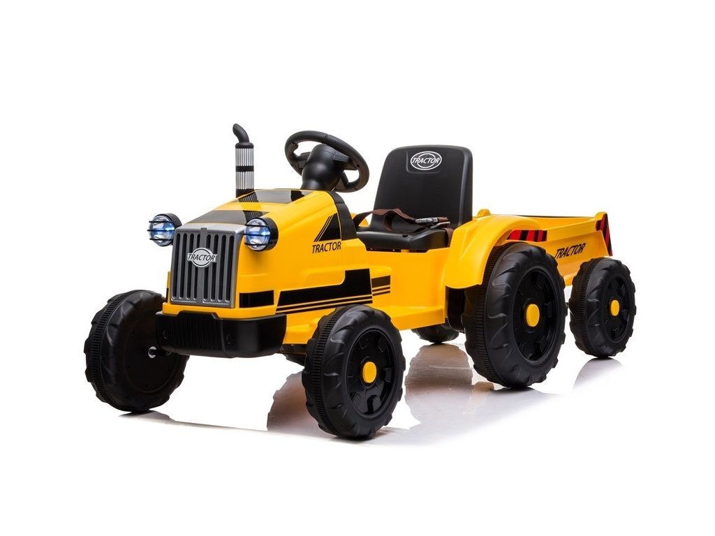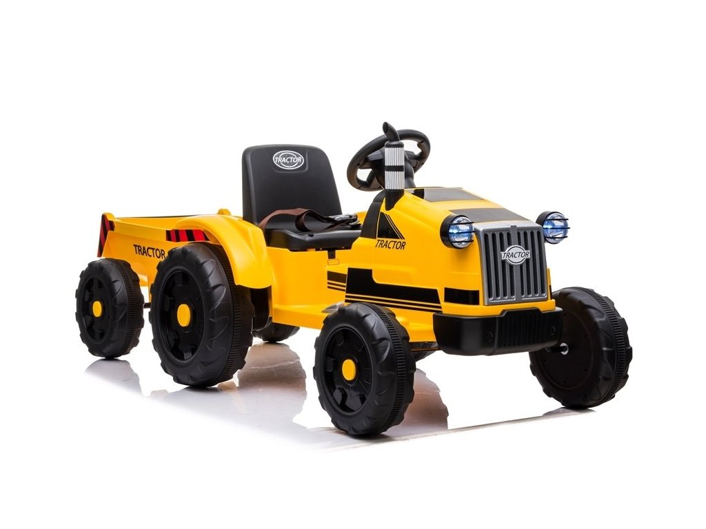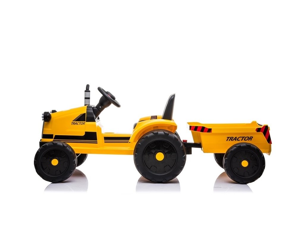 Конструкцията на електрическия трактор е базирана на четири колела. Тези гуми имат грайферна структура, която позволява на детето да кара на различни повърхности. Детският трактор се захранва от акумулаторна батерия 12V7Ah, комбинирана с два мотора по 45W. Тази конфигурация осигурява скорост от 2 до 4 км/ч. Тракторът е подходящ за момчета и момичета над 3 години – единственото ограничение е максималното натоварване до 35 кг.