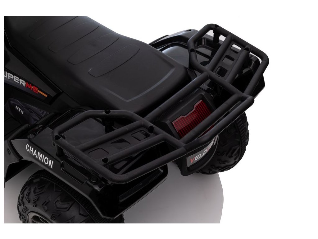 Детски акумулаторно атв Superme черен е оборудван с два мотора с обща мощност 90W. ATV-то уверено се справя с различни терени, включително неравна повърхност и хълмове.