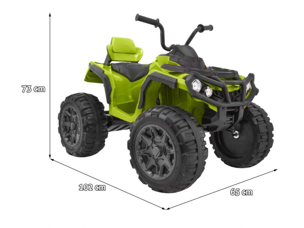 Детски акумулаторно атв зелено е перфектният начин да въведете децата в света на моторните превозни средства. Електрическото атв осигурява много забавление както при разходки с цялото семейство, така и при игра в двора. Детето развива умения за управление и подобрява моториката си чрез каране. Атвето се движи напред и назад и разполага с възможност за ускорение. Колелата са изработени от мека EVA пяна. Седалката е изключително удобна и ергономично оформена, което прави детето мотивирано да се връща за още игри зад волана. Освен това, атв-то разполага с LED осветление. Атвето е сертифицирано с европейския стандарт за безопасност CE и е подходящо за деца над 3 години.