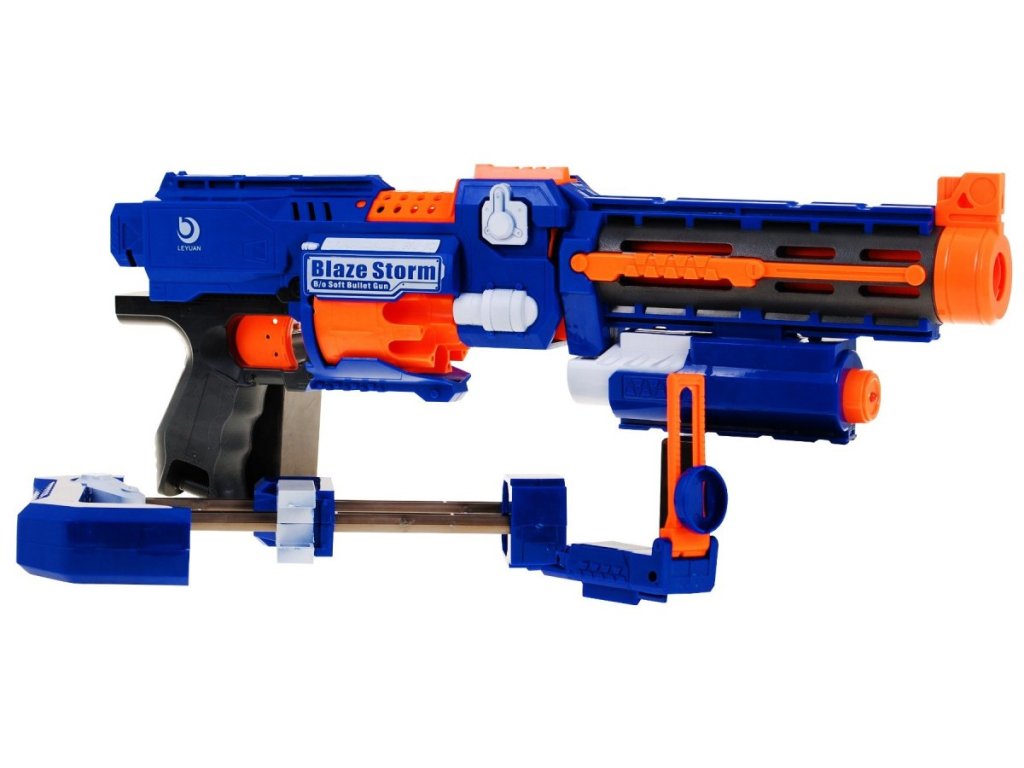 Изключително бърз и прецизен детски автомат Blaze Storm с лазерен мерник 7056, който се зарежда с 10 пянени снаряди, безопасни за игра и без риск от нараняване. Снарядите са меки и без остри ръбове, което предотвратява всякакви травми. Автоматът се зарежда отпред и може да изстрелва до 3 снаряда в секунда! Детският автомат стреля на разстояние до 10 метра. Той е удобен за държане, лек и издръжлив. Може лесно да бъде преобразуван от автомат в ръчен пистолет. С този автомат игрите са винаги забавни – организирайте стрелба вкъщи и включете цялото семейство, дори и татковците да се върнат към детските си години заедно със своите синове. В нашата колекция предлагаме и други модели на марката Blaze Storm.