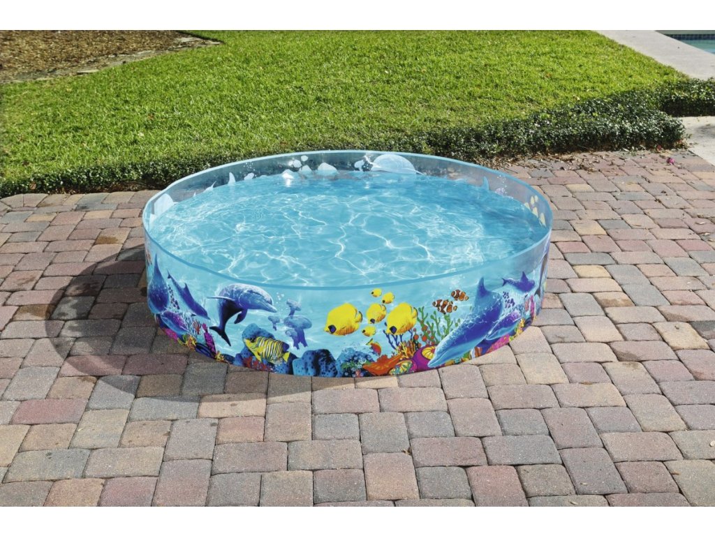 Представяме Ви страхотния детски басейн Bestway 183x38 см рибки, подходящ за всяка градина. Стените на басейна са изработени от здрав PVC материал, а дъното – от винил. С голяма площ с диаметър 183 см, басейнът позволява няколко малки деца да се къпят едновременно. Подходящ е за деца над 3 години и разполага с европейски сертификат CE.