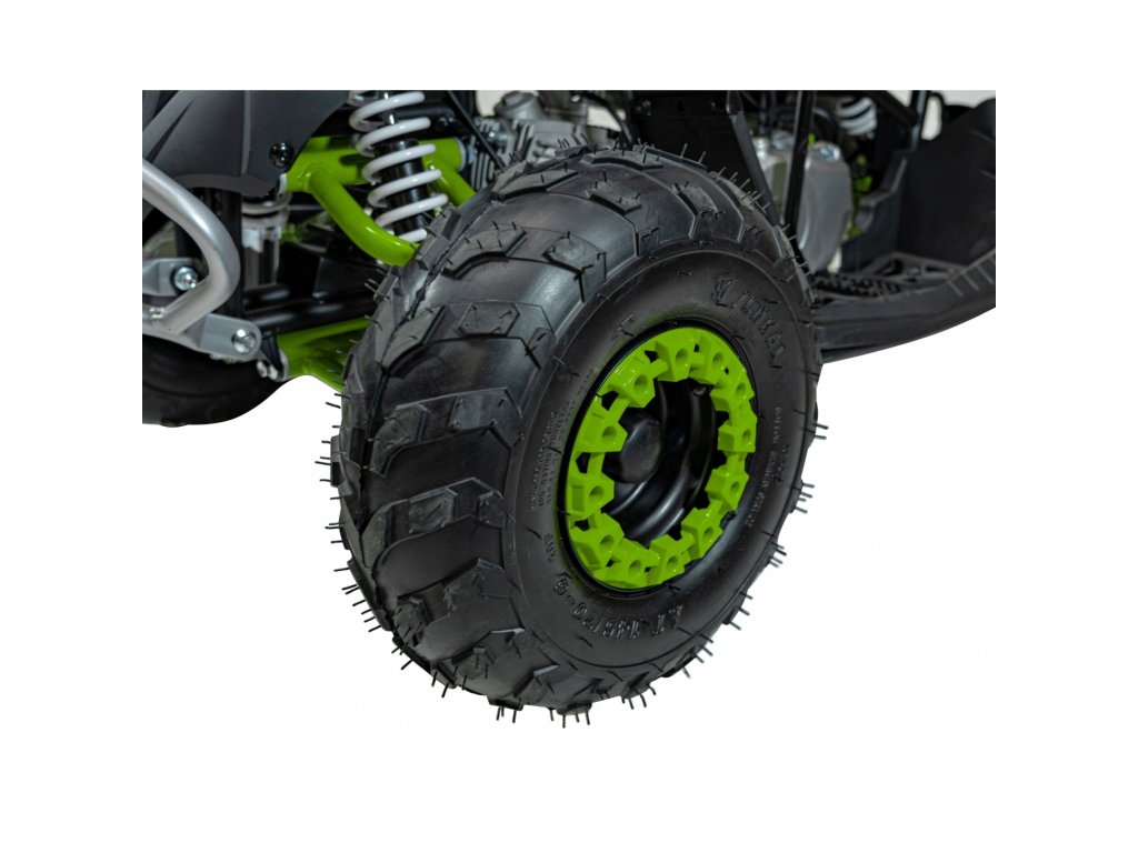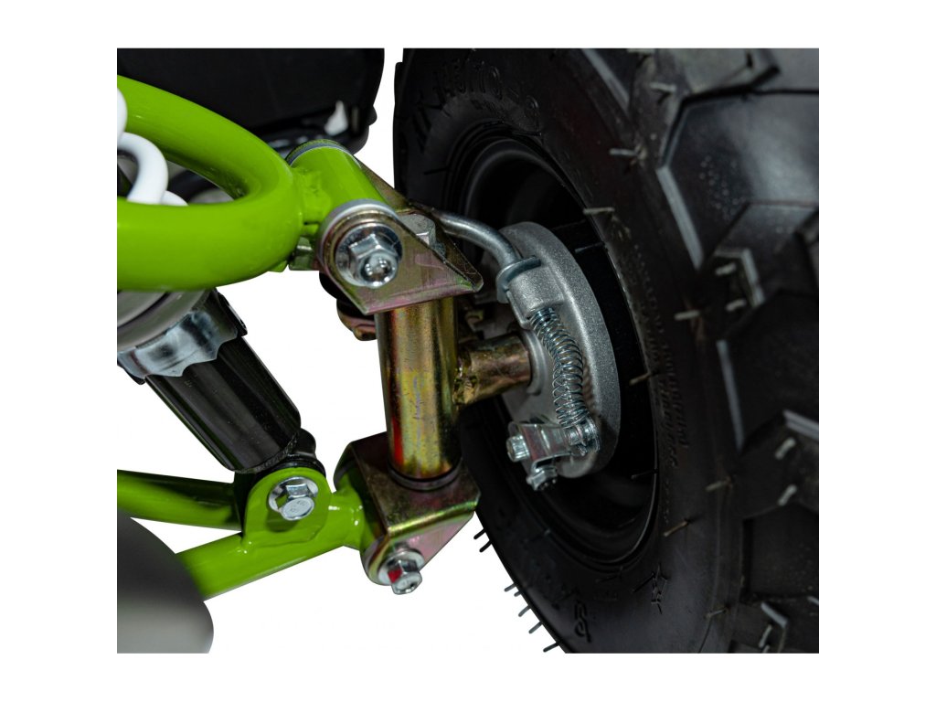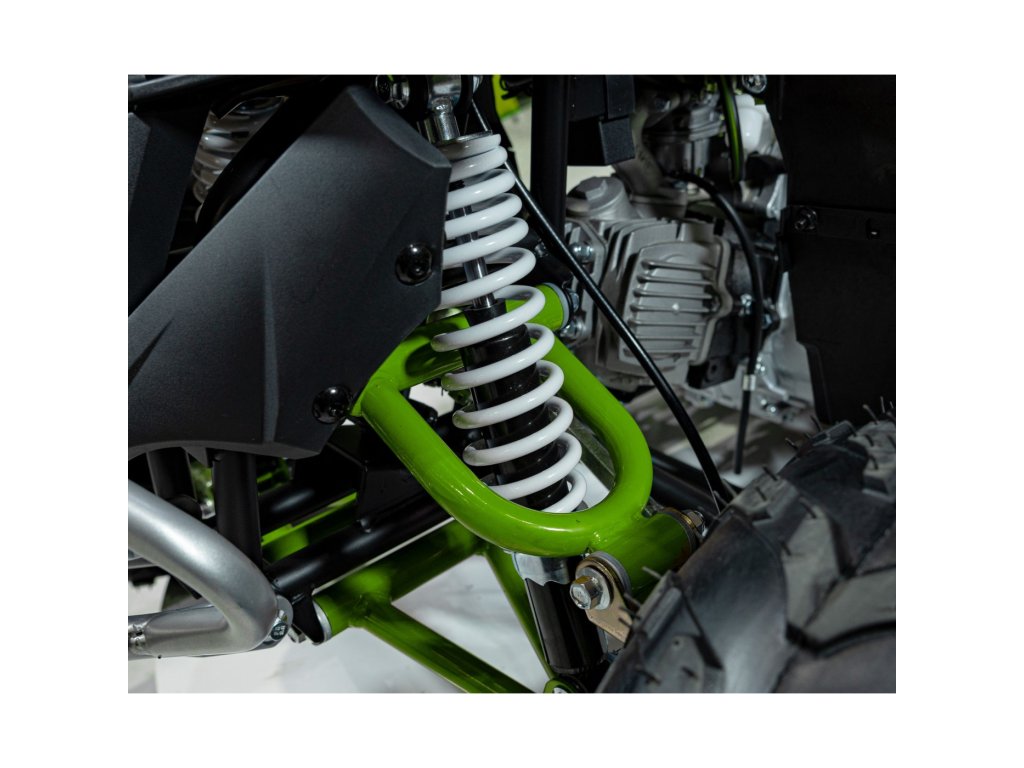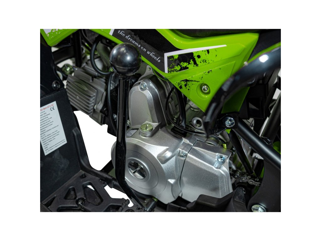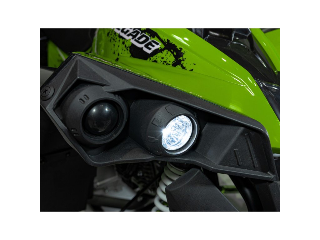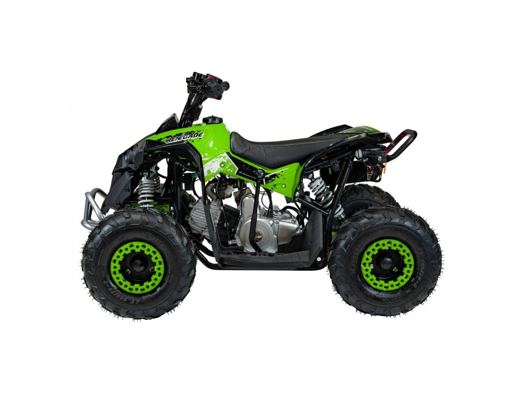 Детски бензинов АТВ RENEGADE HIPERFECT 110CC зелен е оборудван с едноцилиндров четиритактов двигател и широки въздушни гуми. Машината разполага с резервоар с вместимост 2,5 литра.