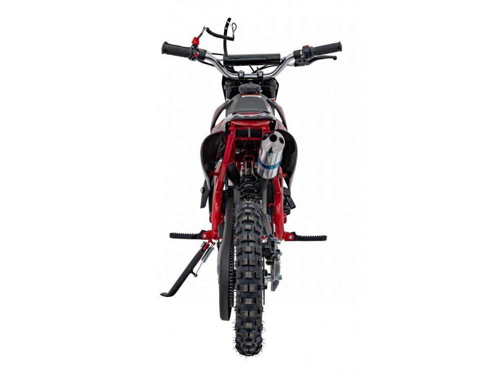 Детски бензинов мотор RENEGADE 50R червен е оборудван с едноцилиндров двутактов двигател и широки пневматични гуми. Моторът разполага с резервоар с вместимост 2 литра.