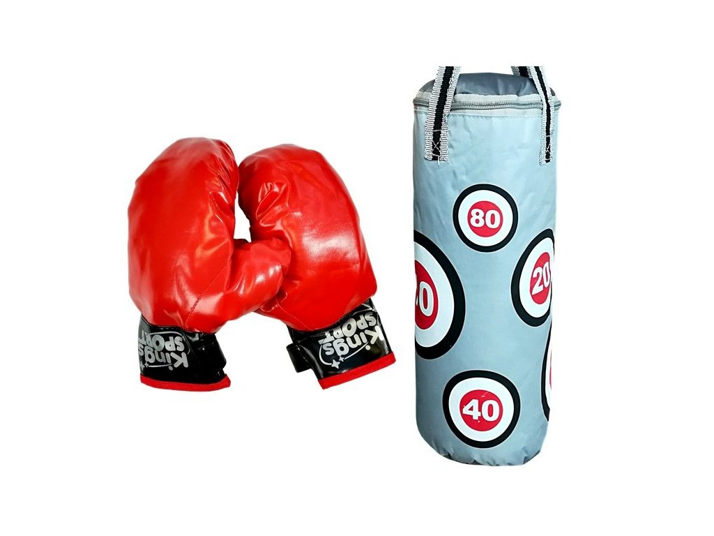 Тренировъчен комплект за бокс се състои от боксов чувал и ръкавици. Прикачените детски ръкавици са универсални и пасват на всички. Допълнително предимство са числата, поставени върху боксовия чувал, които при удар детето събира определен брой точки. Играчката е универсална и е идеална както за момичета, така и за момчета.