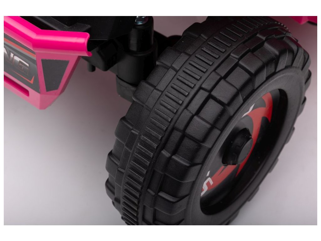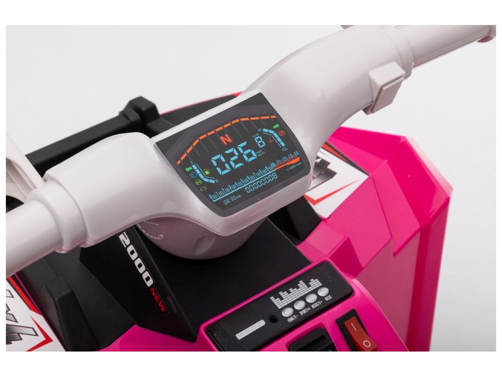 Детската електрическа четириколка има мотор с мощност 45W и широки пластмасови колела. Четириколката е предназначена за каране по трева или асфалт и нейната товароносимост е до 30 kg.
