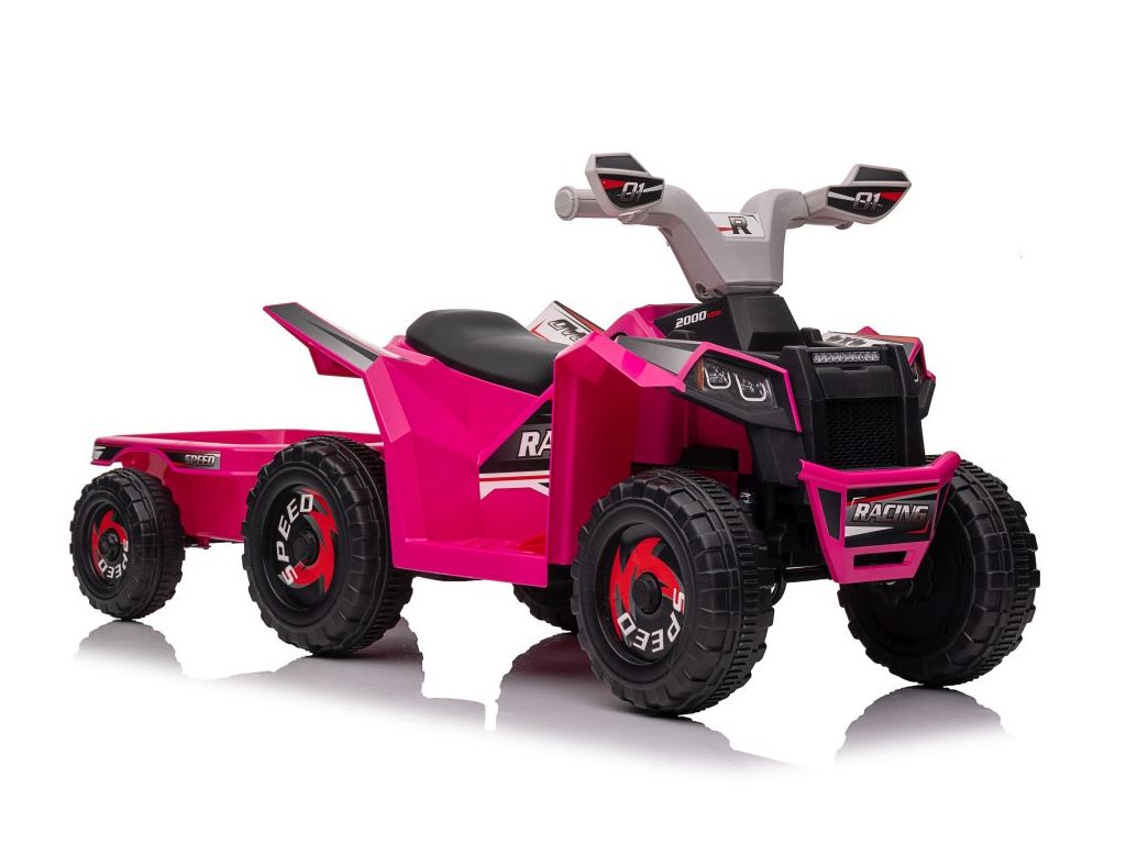 Детски електрически АТВ с ремарке + мегафон 6V7Ah розов