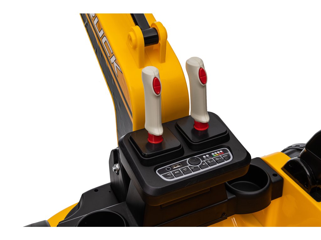 Освен впечатляващата функционалност, детският багер е оборудван с музикален плейър с функция Bluetooth, USB вход и жак кабел (AUX), така че децата да могат да пускат любимите си песни, докато играят. За спокойствие на родителите, превозното средство е оборудвано с няколко функции за безопасност, като двуточков колан и странични защитни бариери, както и дистанционно управление, което позволява на родителите да управляват багера и кофата дистанционно.