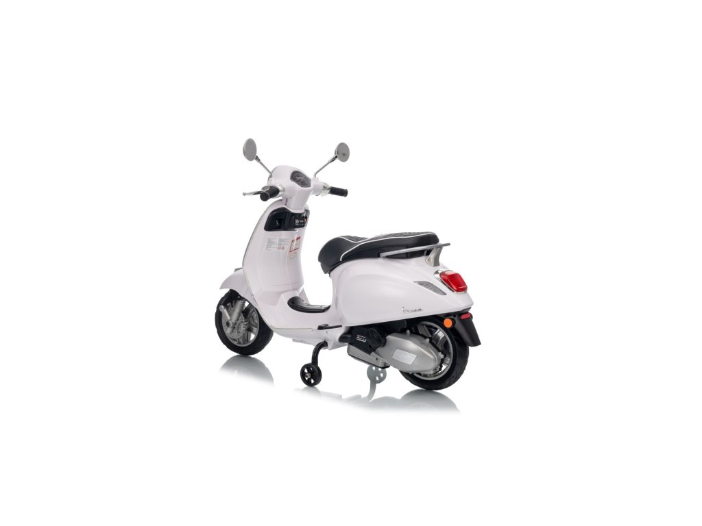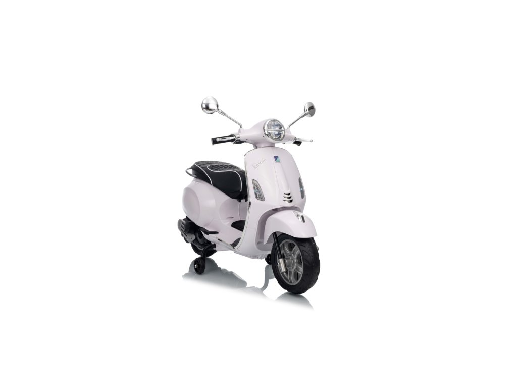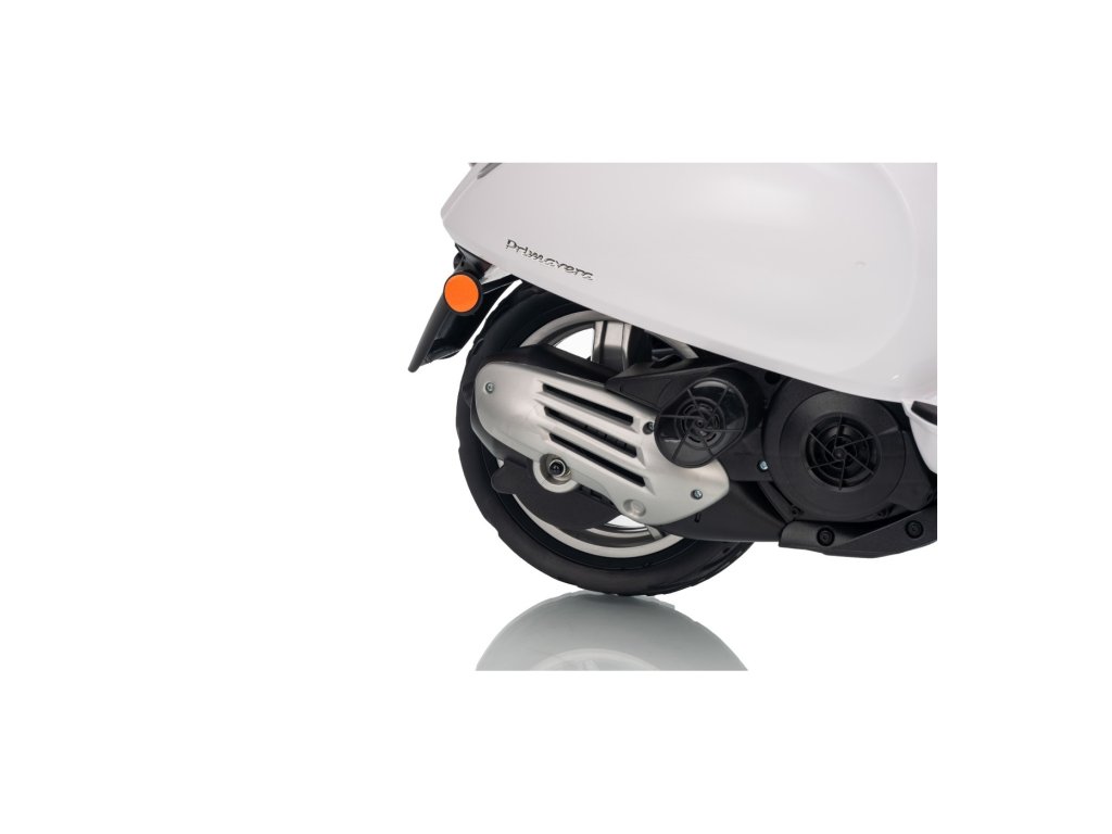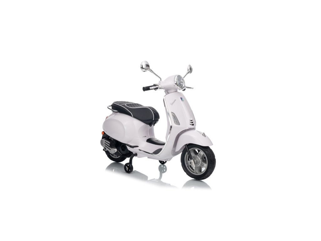 Кой не познава скутера марка Vespa? Този легендарен скутер може да се управлява и от Вашето дете, благодарение на този лицензиран модел. Скутерът има качествена седалка, покрита с мека екологична кожа, и меки EVA колела. Към всичко това красиви предни и задни LED светлини и може да възпроизвежда MP3 файлове, така че детето да може да слуша любимата си песен по време на шофиране и в същото време да усъвършенства шофьорските си умения.