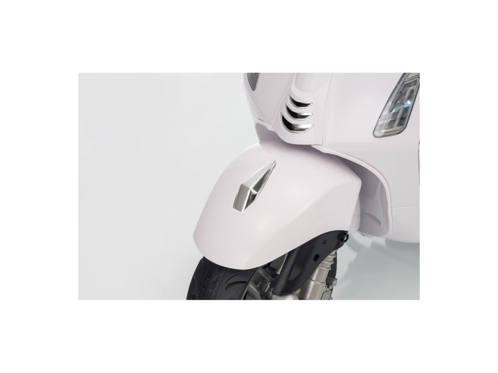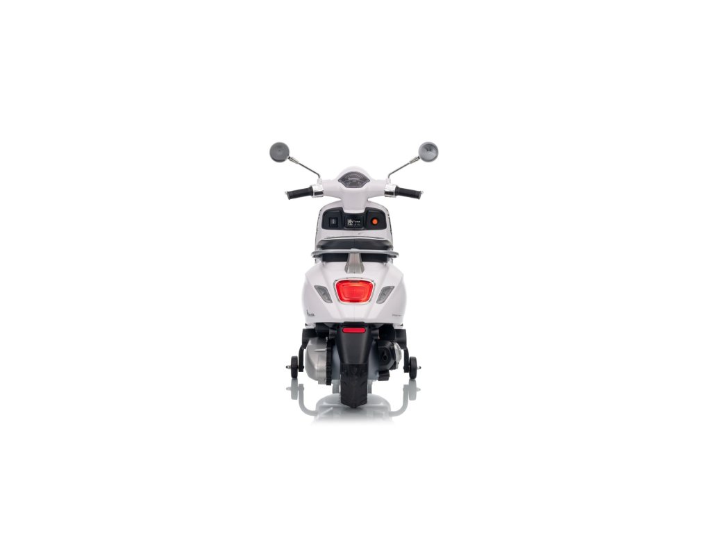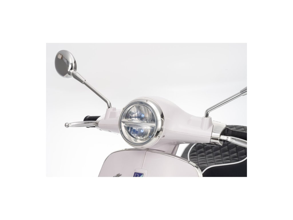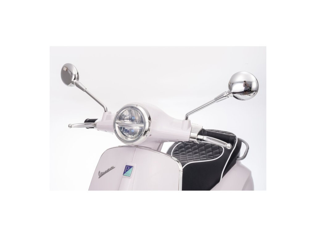 Кой не познава скутера марка Vespa? Този легендарен скутер може да се управлява и от Вашето дете, благодарение на този лицензиран модел. Скутерът има качествена седалка, покрита с мека екологична кожа, и меки EVA колела. Към всичко това красиви предни и задни LED светлини и може да възпроизвежда MP3 файлове, така че детето да може да слуша любимата си песен по време на шофиране и в същото време да усъвършенства шофьорските си умения.