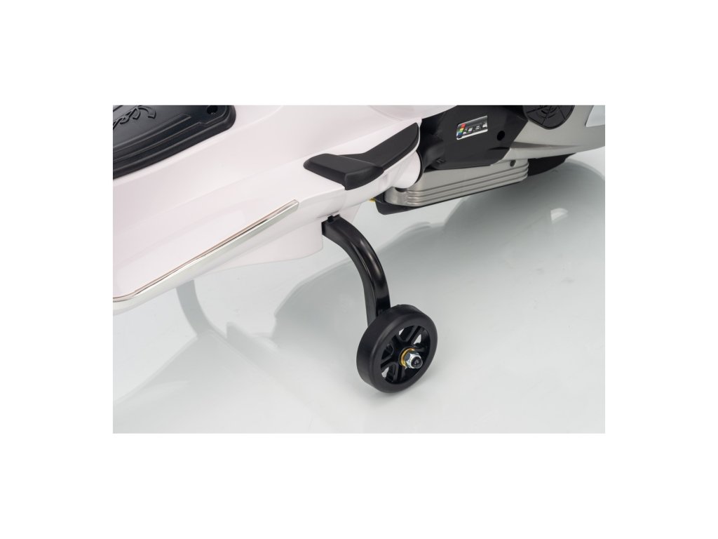 Vespa издържа 1 час сензационно каране. За безопасността на детето се грижат страничните колела и автоматичната спирачка, която спира, когато детето вдигне крака си от педала на газта. Детският скутер е подходящ за деца от 3 години.