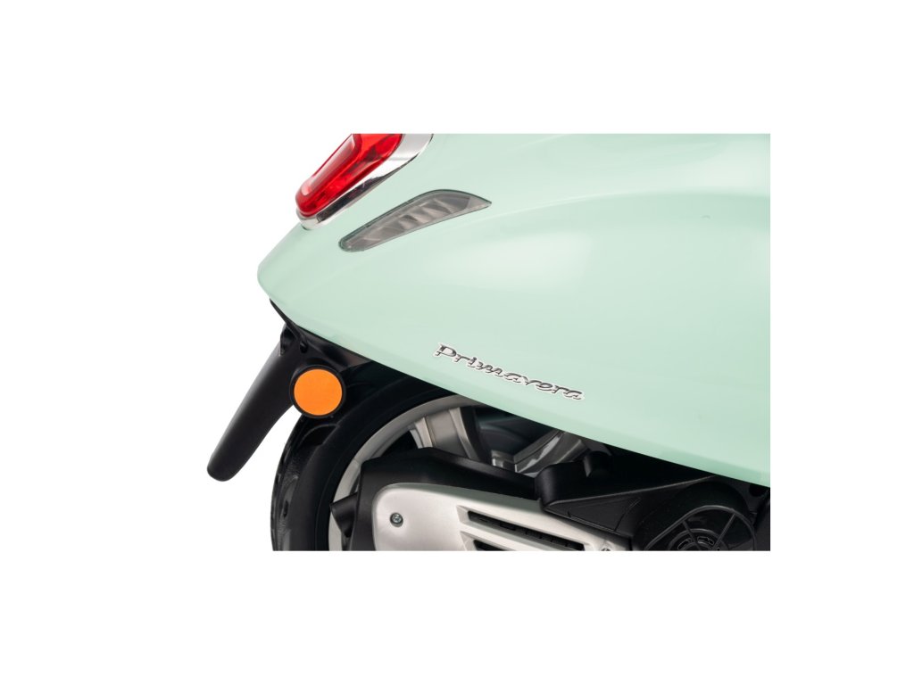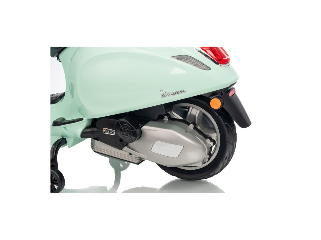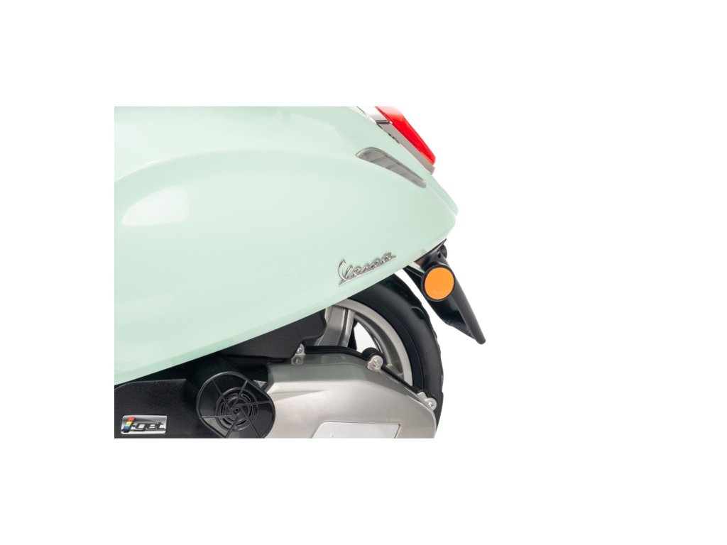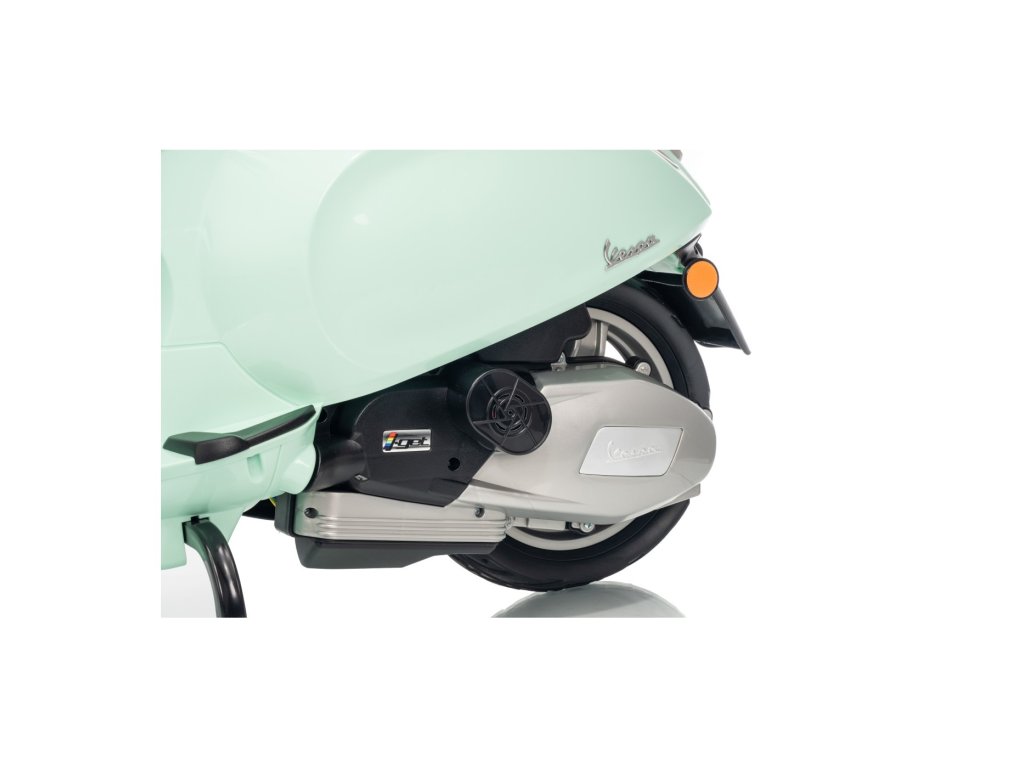 Vespa издържа 1 час сензационно каране. За безопасността на детето се грижат страничните колела и автоматичната спирачка, която спира, когато детето вдигне крака си от педала на газта. Детският скутер е подходящ за деца от 3 години.