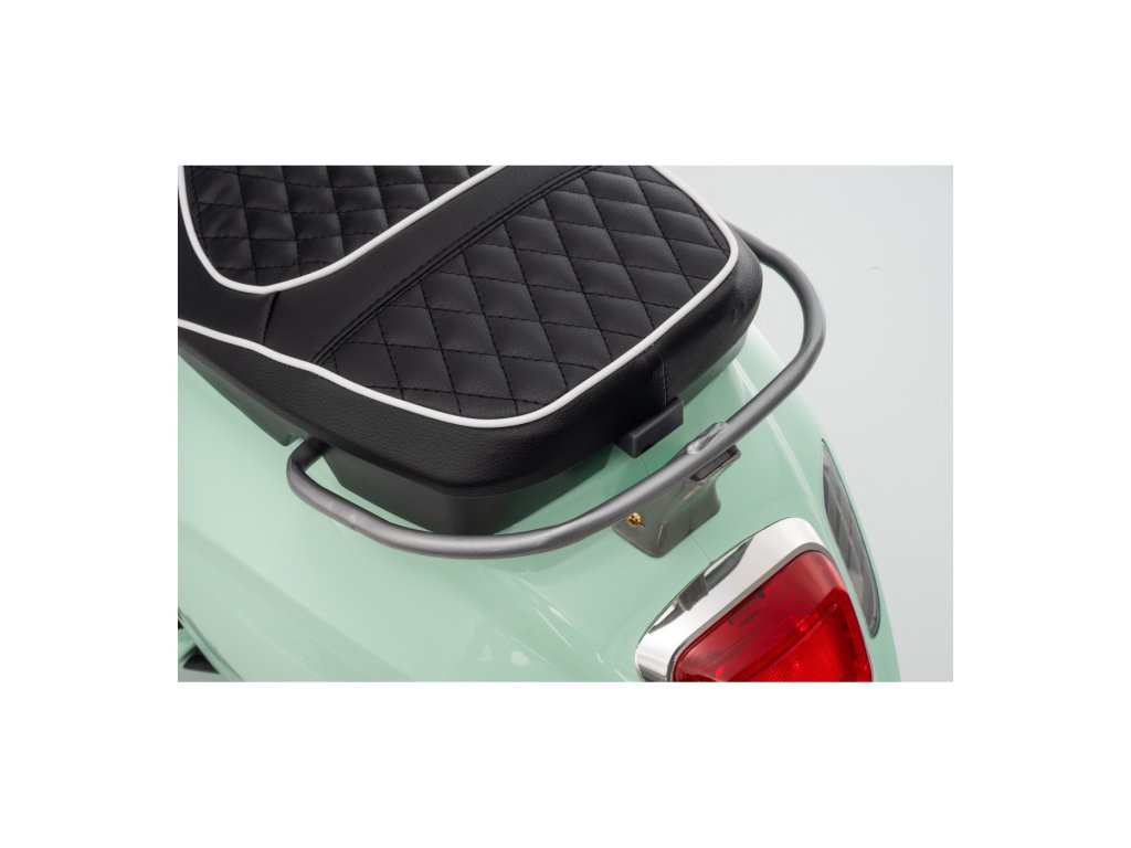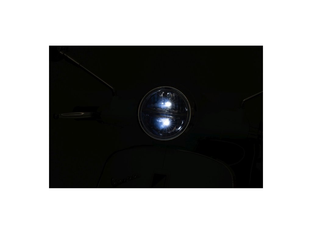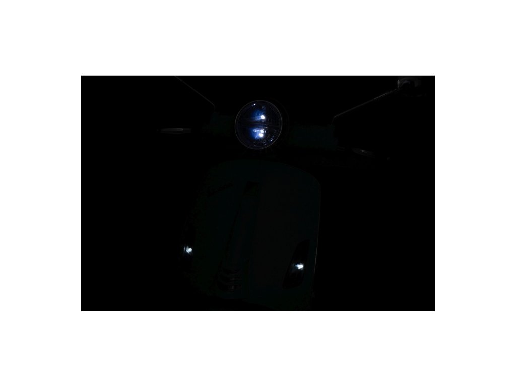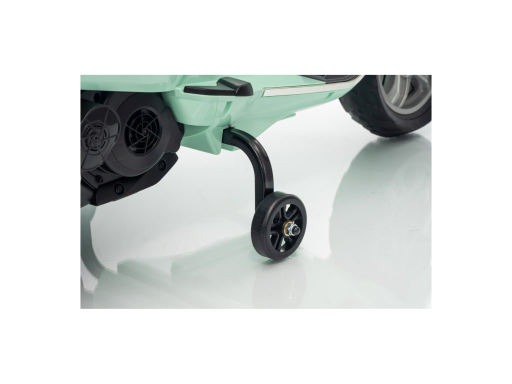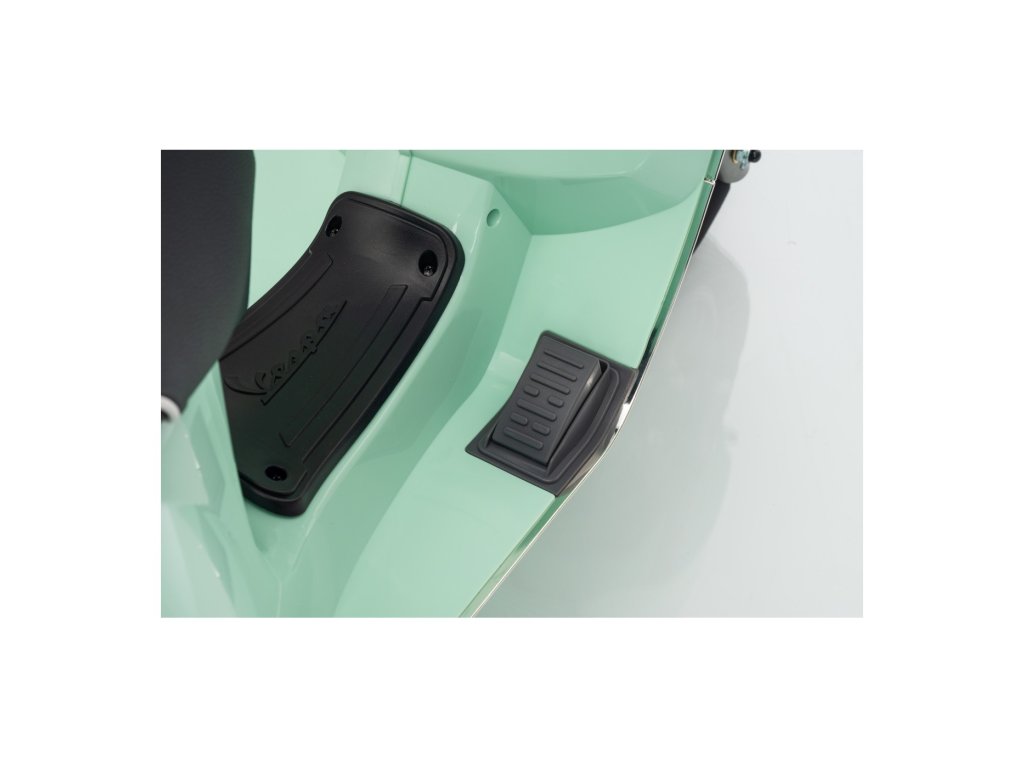 Vespa издържа 1 час сензационно каране. За безопасността на детето се грижат страничните колела и автоматичната спирачка, която спира, когато детето вдигне крака си от педала на газта. Детският скутер е подходящ за деца от 3 години.